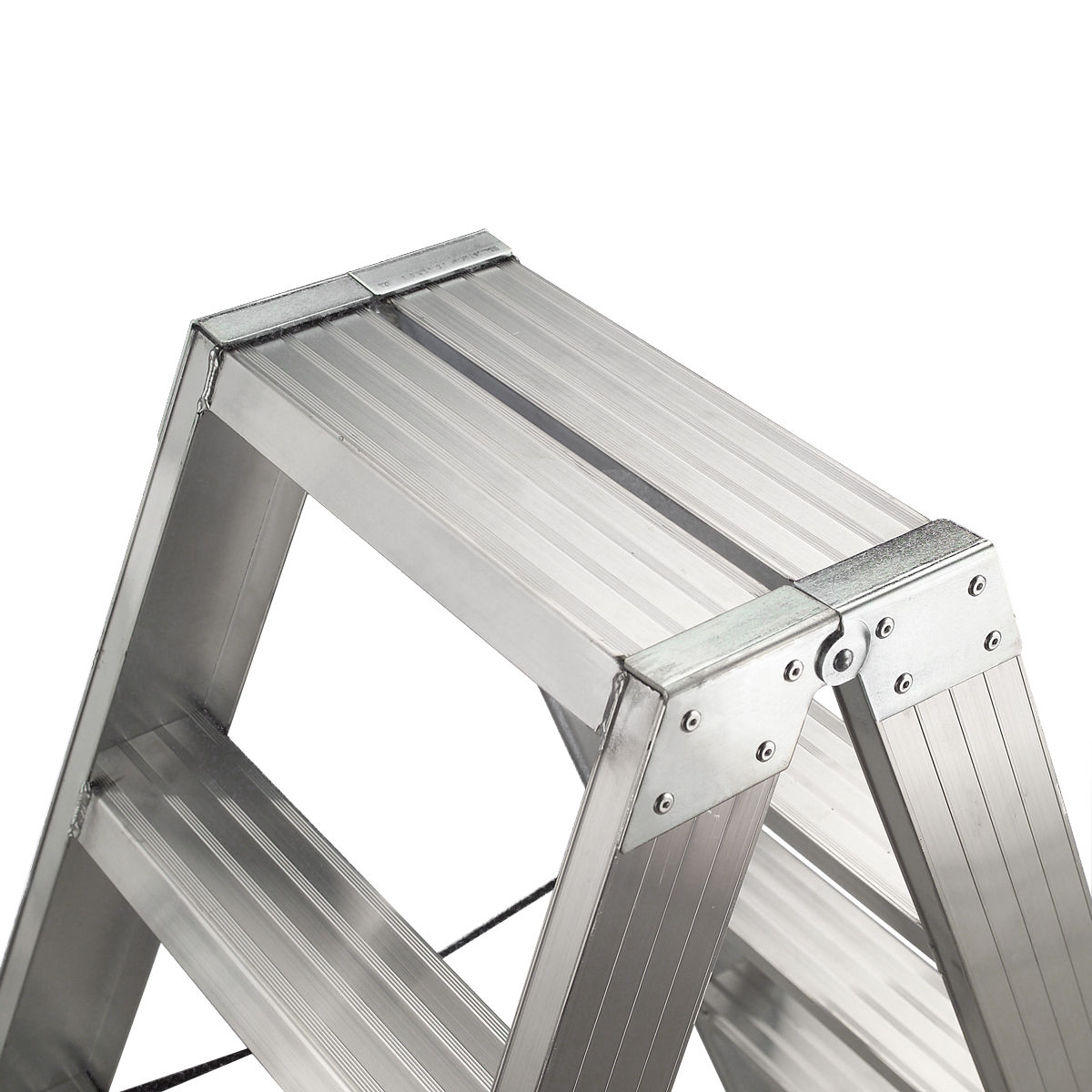 Escalera profesional ligera y resistente. Estructura formada a partir de perfiles de aluminio nervados y soldados. Pensada para trabajar en posición caballete.