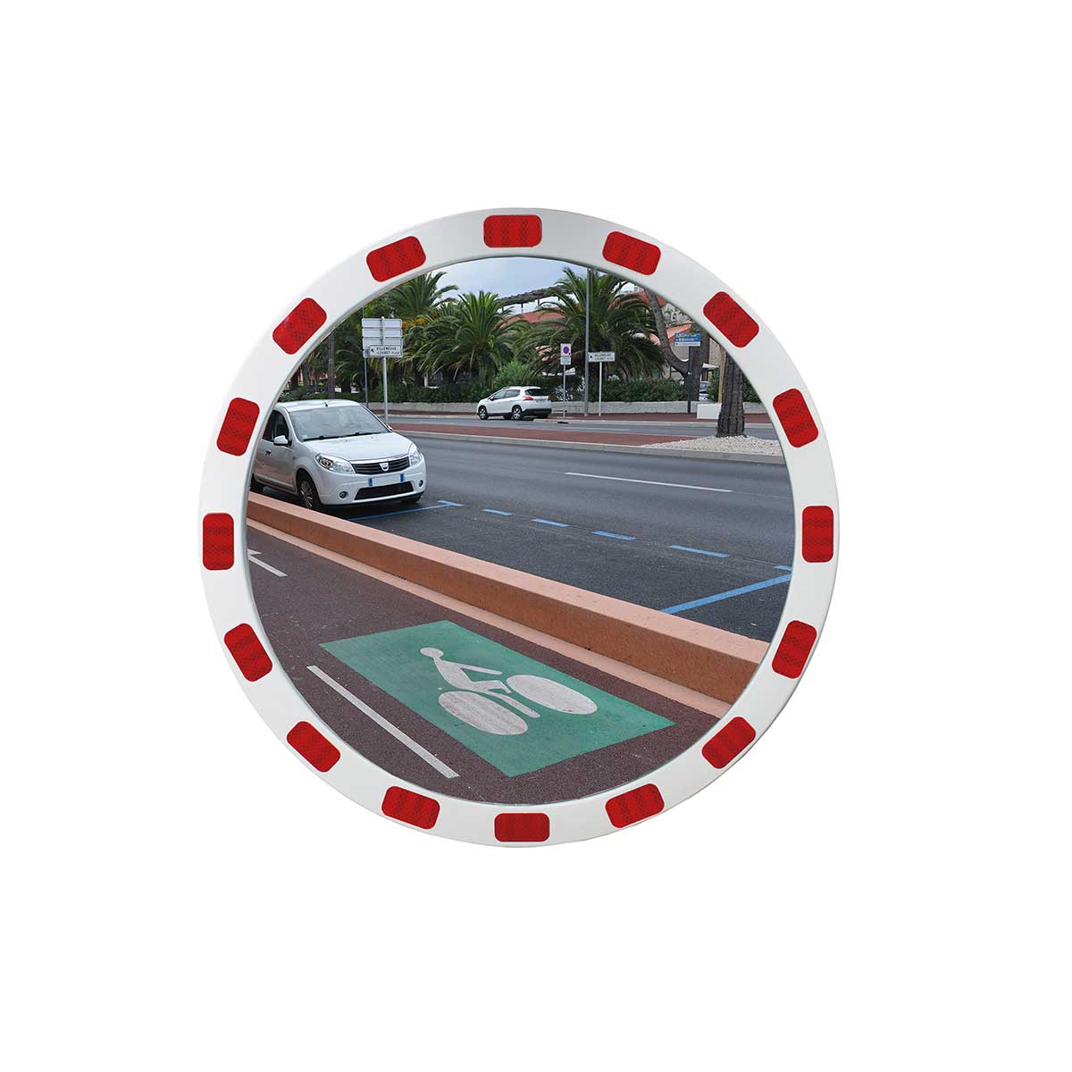 Espejo redondo con bandas reflectantes para salidas o intersecciones