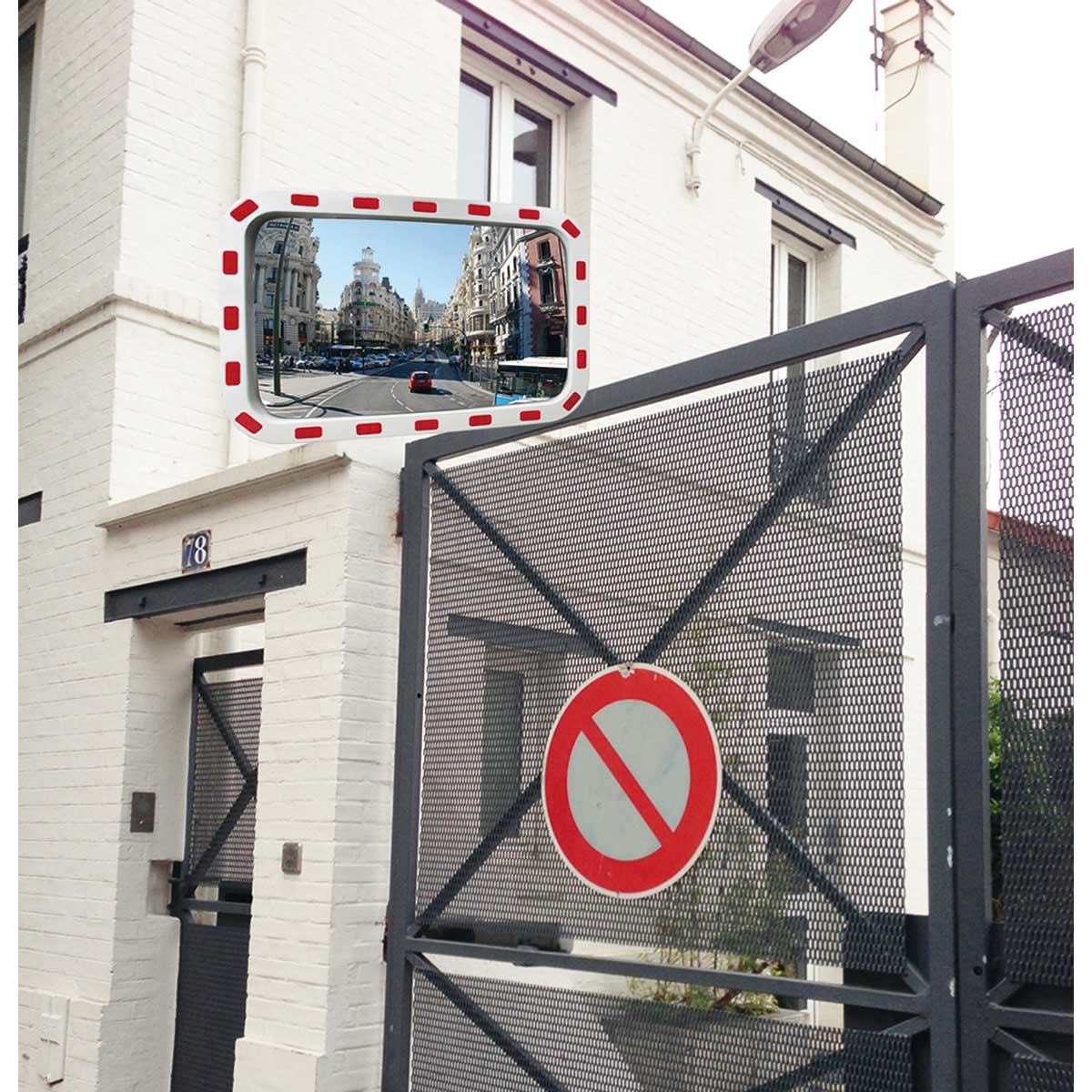 Espejos con bandas reflectantes para salidas o intersecciones