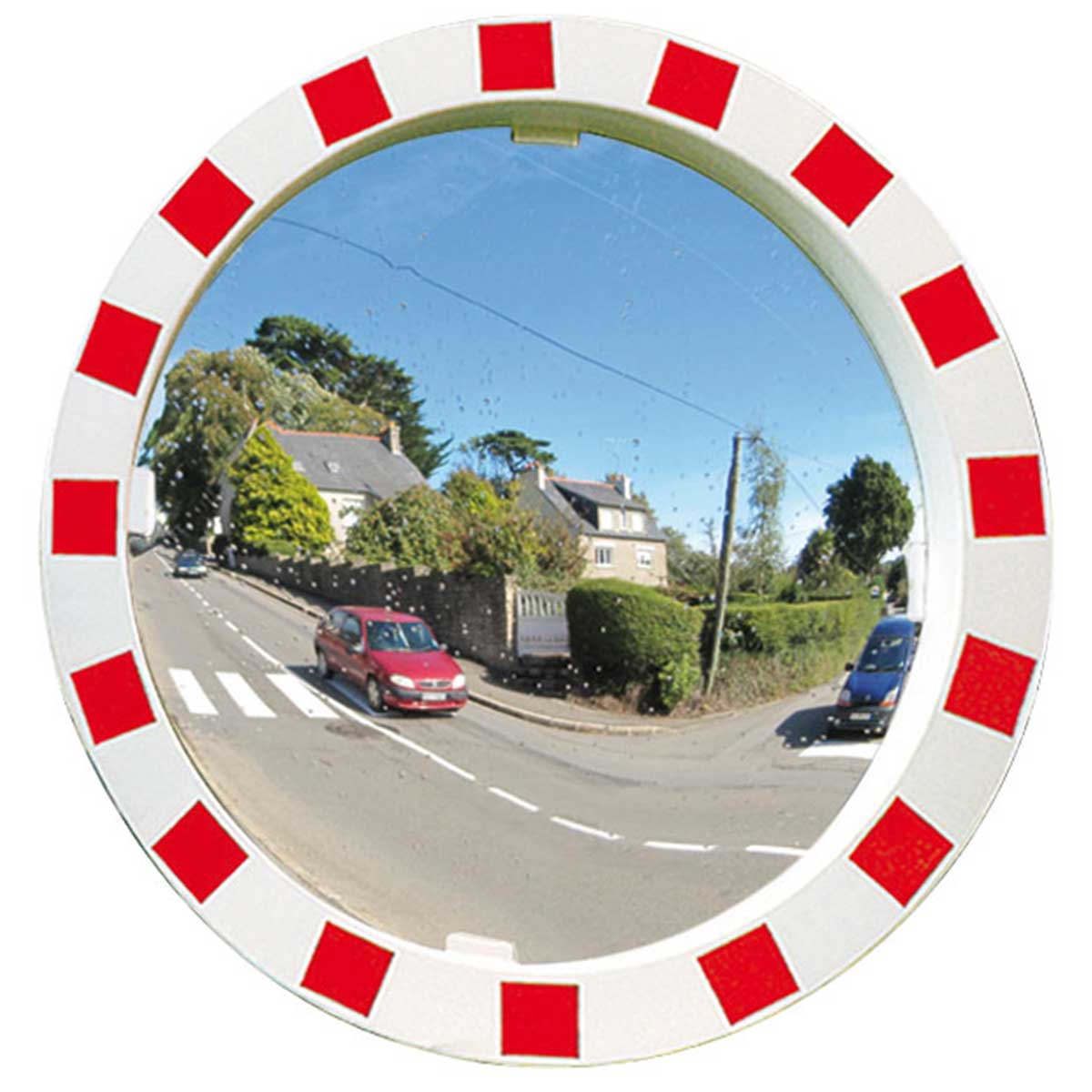Fabricado en policarbonato con bandas reflejantes rojas.