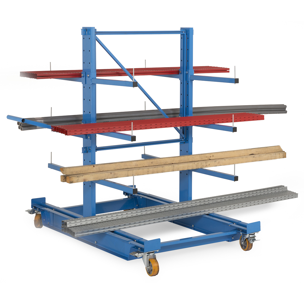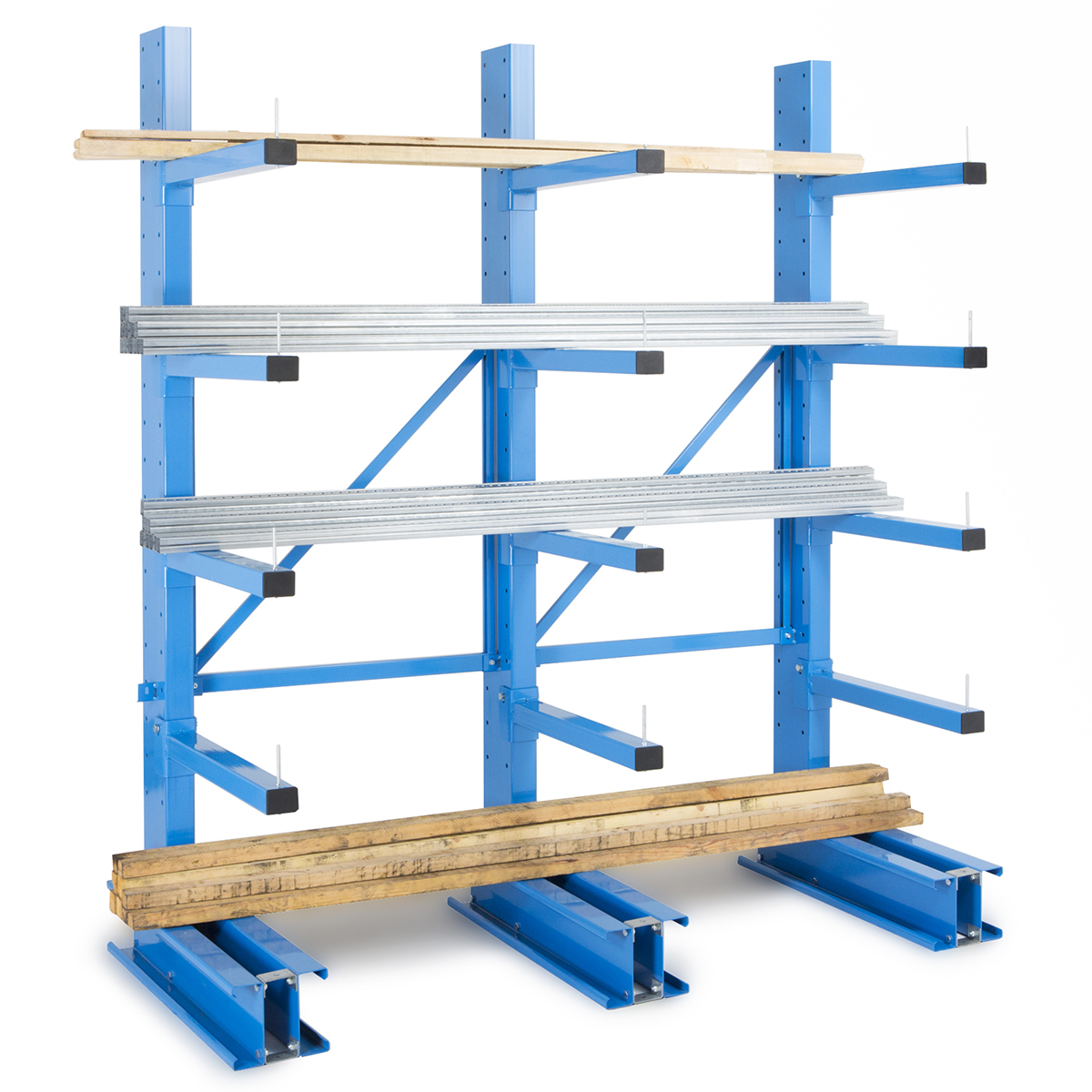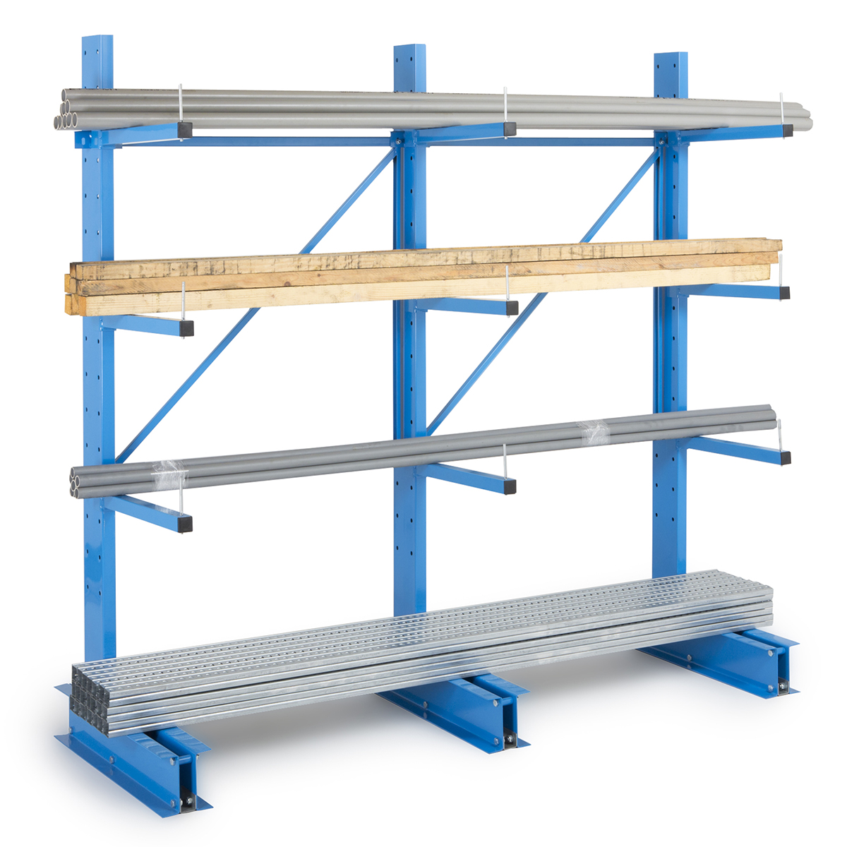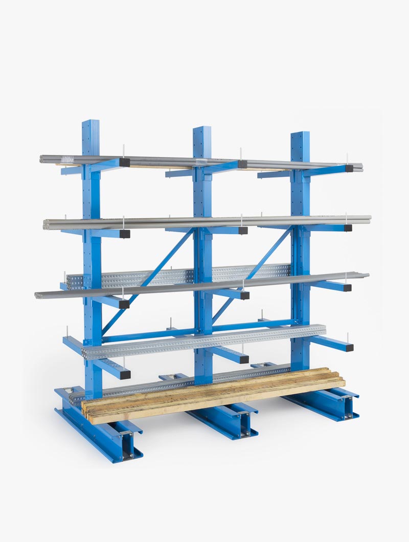 Las estanterías Biblock están formadas por columnas estructurales especialmente diseñadas para esta función y brazo en voladizo que soportan la mercancía almacenada.