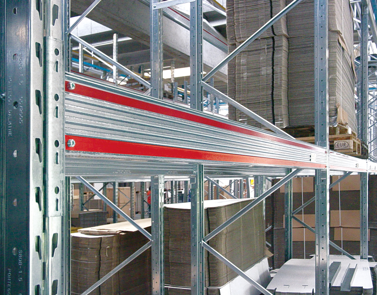 Las Estanterías galvanizadas de paletización para cargas pesadas disponen de perfiles en forma de U con perforaciones para permitir el ensamblaje de los travesaños y largueros, así como de los diferentes accesorios.