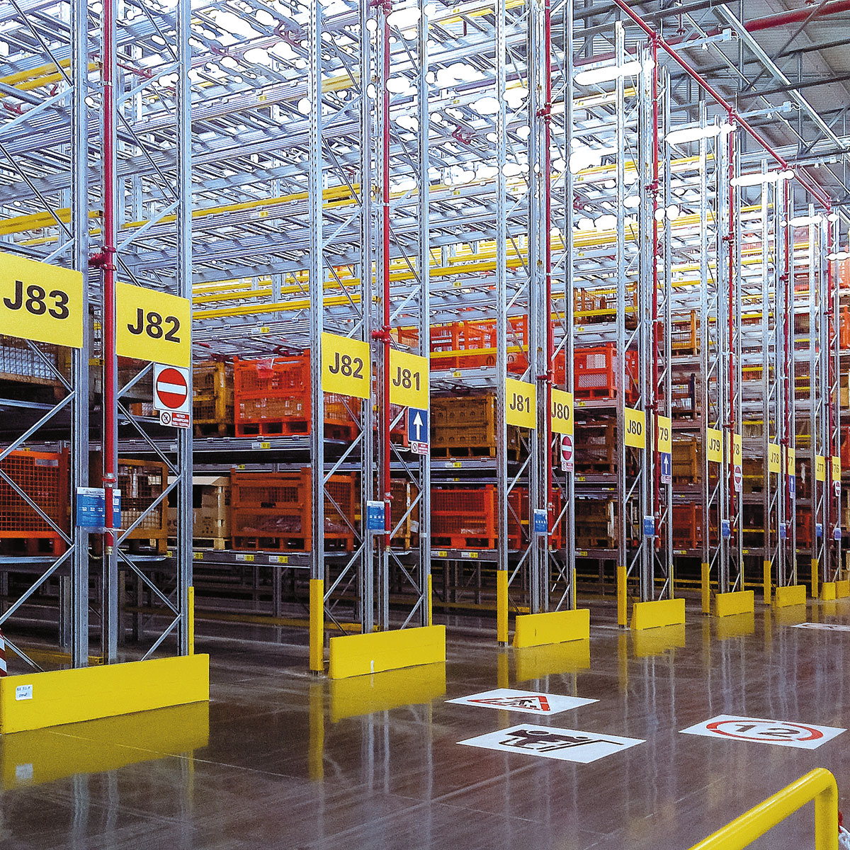 El sistema modular de las estanterías permite colocar diferentes niveles de carga desde 75 cm a 9,9 m, permitiendo el apilado a una altura máxima de 40 m.