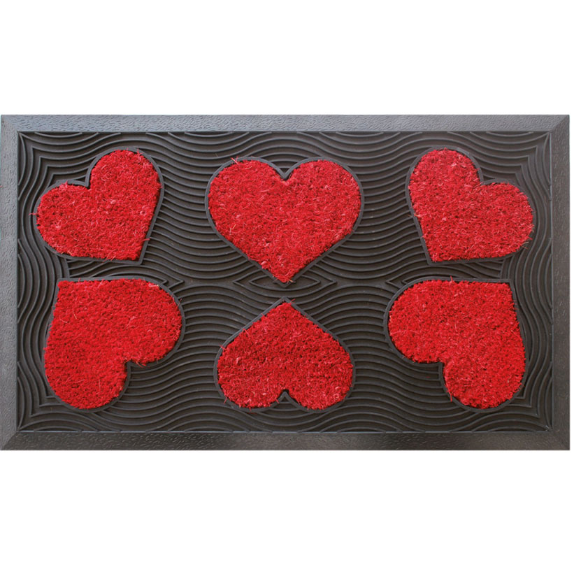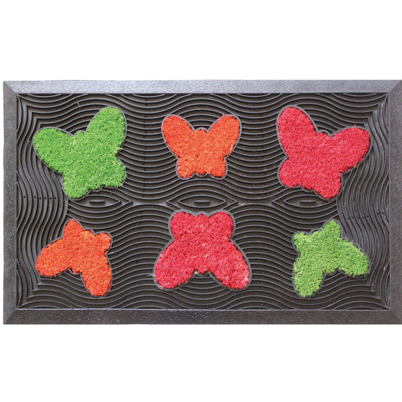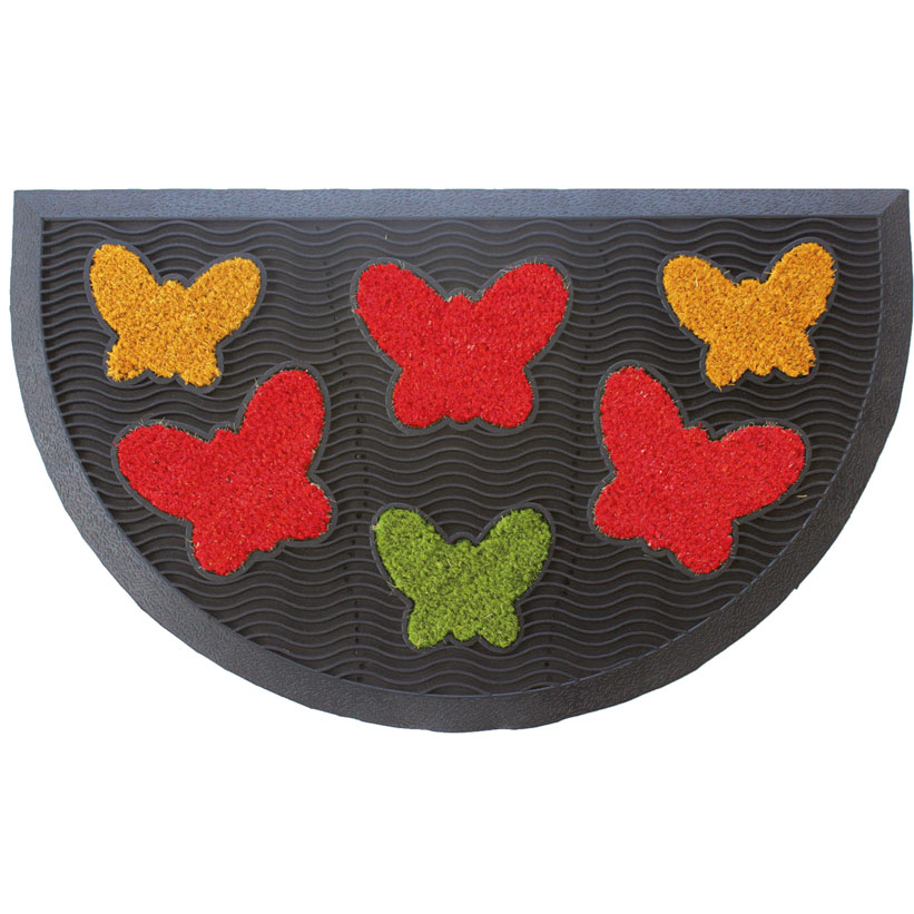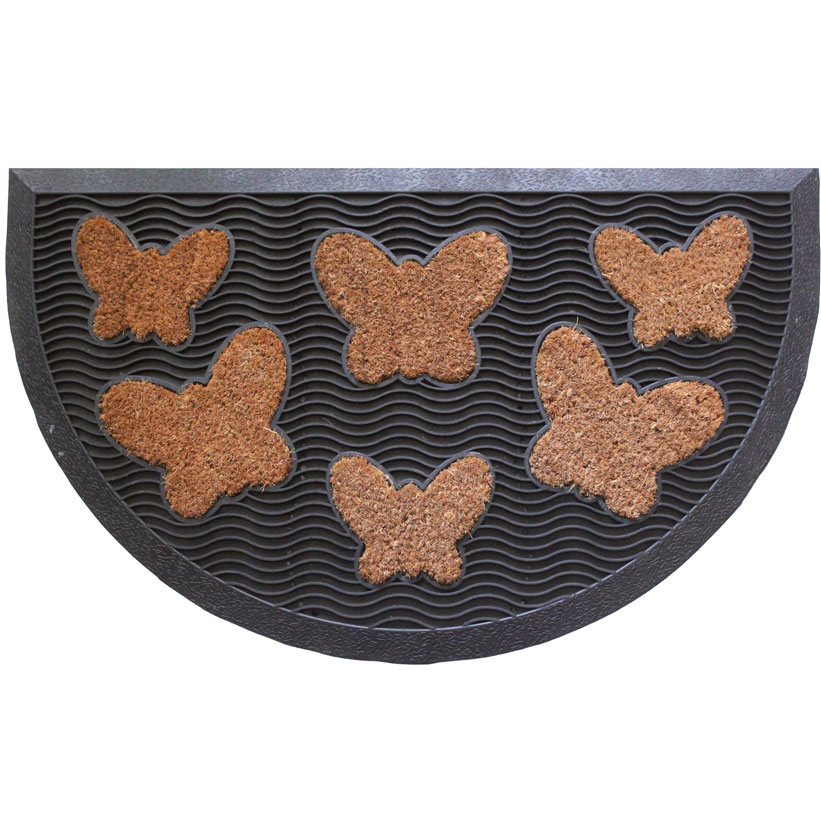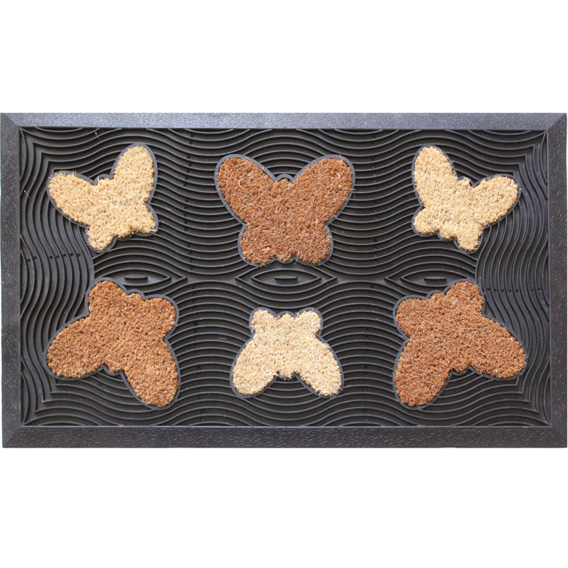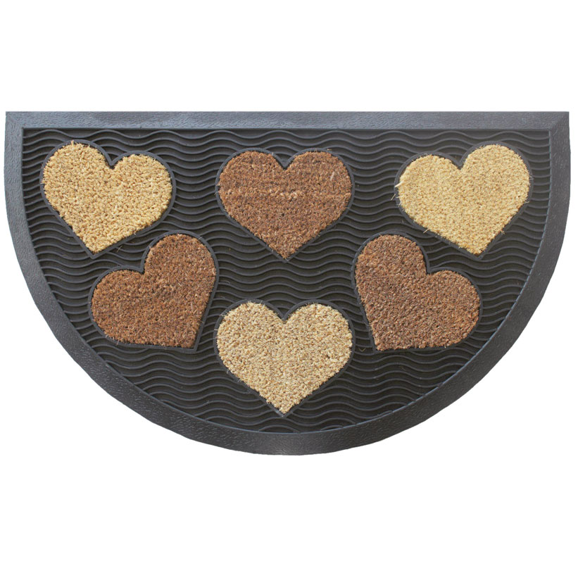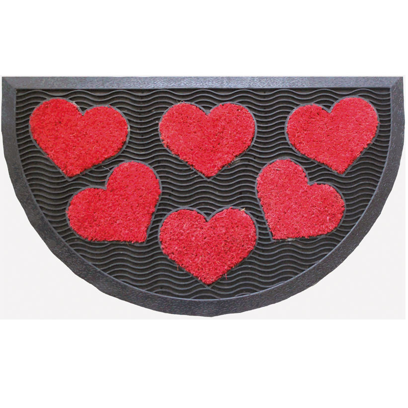 Felpudo de fibra de coco con base de caucho rectangular o en media luna, con figuras en forma de corazón o mariposas, Brenta.