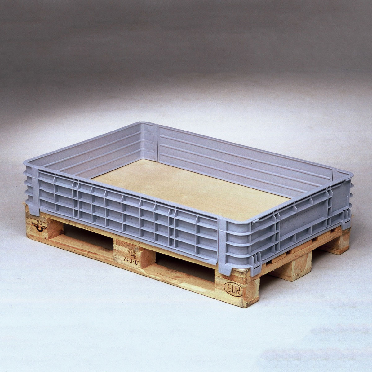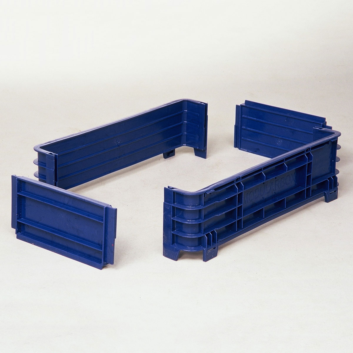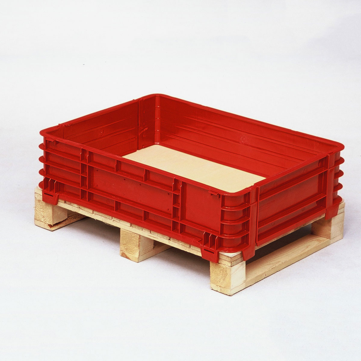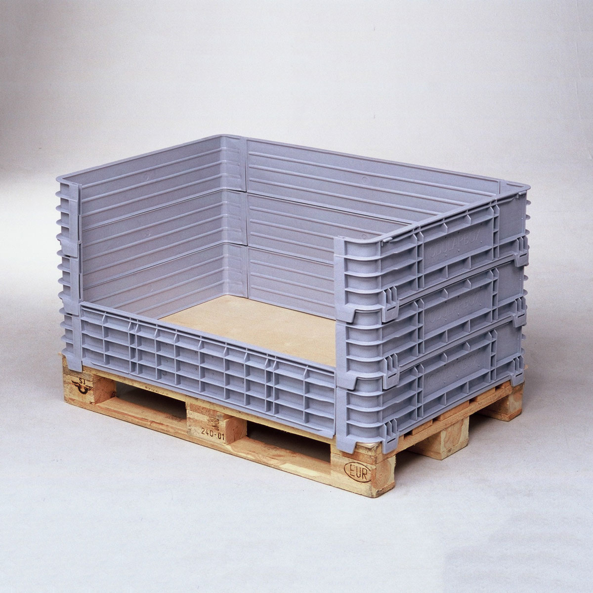 Grandes contenedores plásticos con collarines desmontables. para dar una mayor versatilidad y un mínimo volumen en almacenaje.