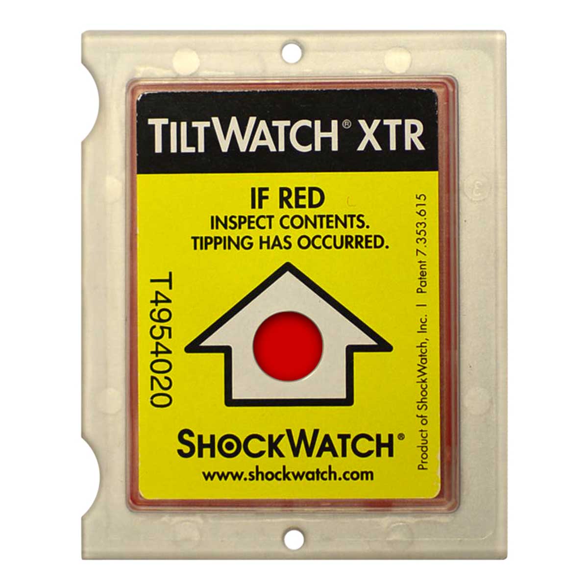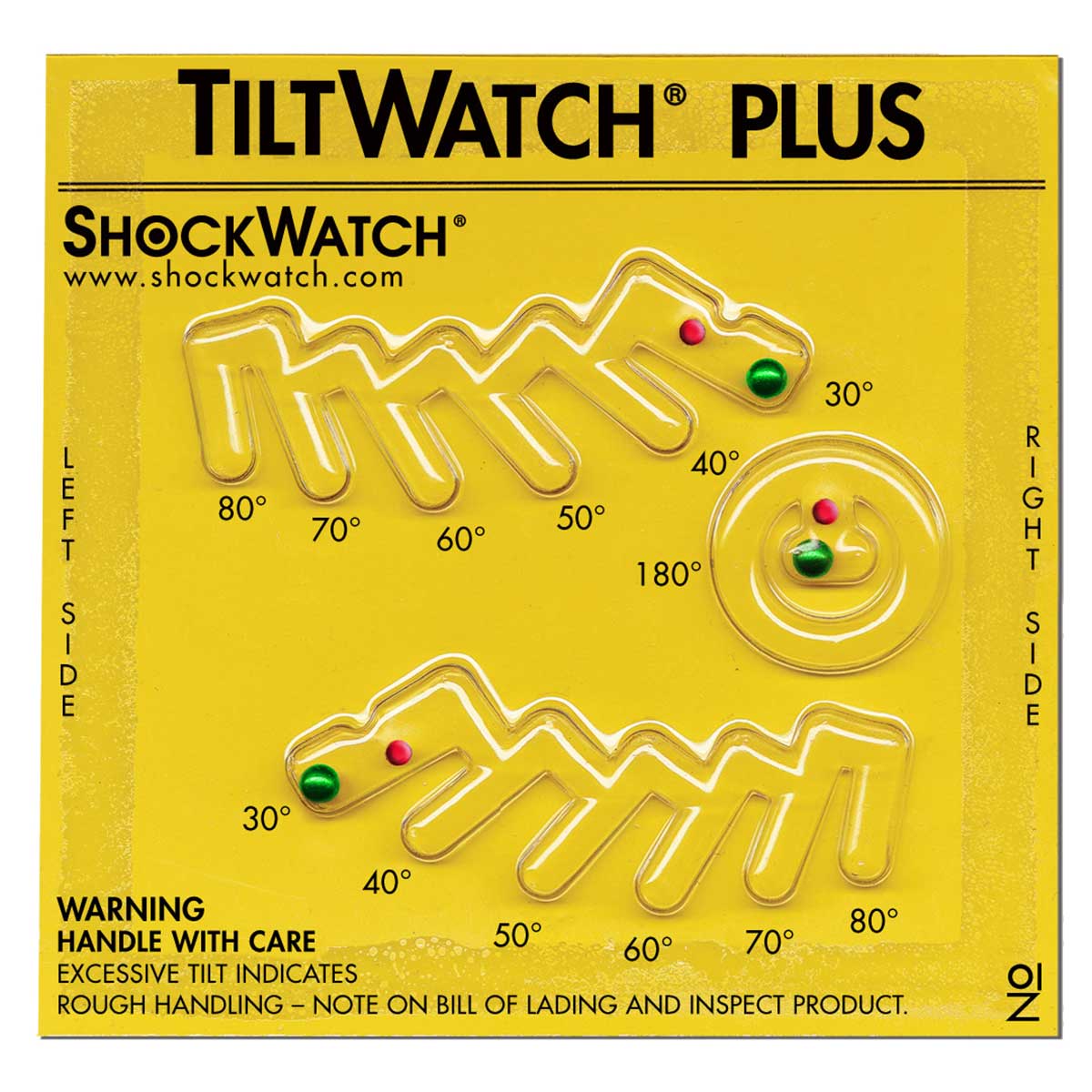 Dos sistemas de control, uno de volcado completo y otro de inclinación y control de grados que se ha llegado a inclinar el embalaje. Aporta una visión rápida cuando el embalaje ha sufrido una inclinación excesiva o un volcado. Se vuelve de color rojo si el embalaje sobre el que se ha colocado se inclina o se vuelca completamente. En cambio no se activa con movimientos normales de manipulación ni durante el despegue en caso de transporte aéreo. Detector de inclinación para una amplia gama de tipos y dimensiones de embalaje. Disponible versión que indica el ángulo de inclinación sufrido.