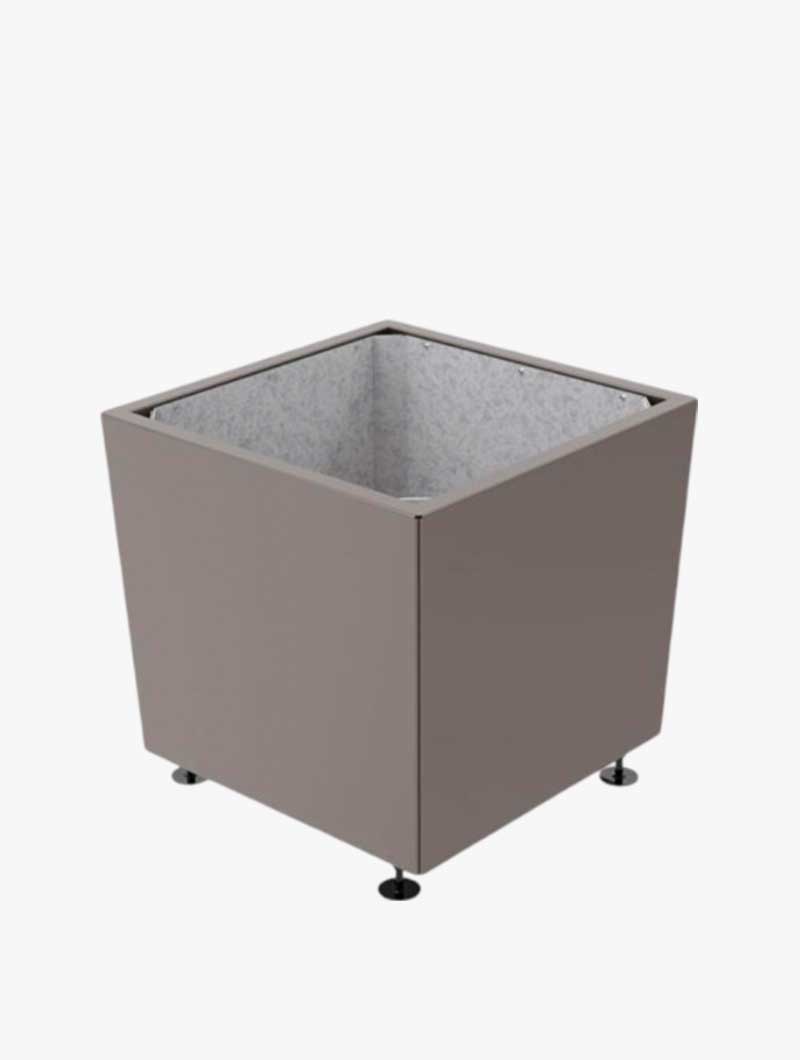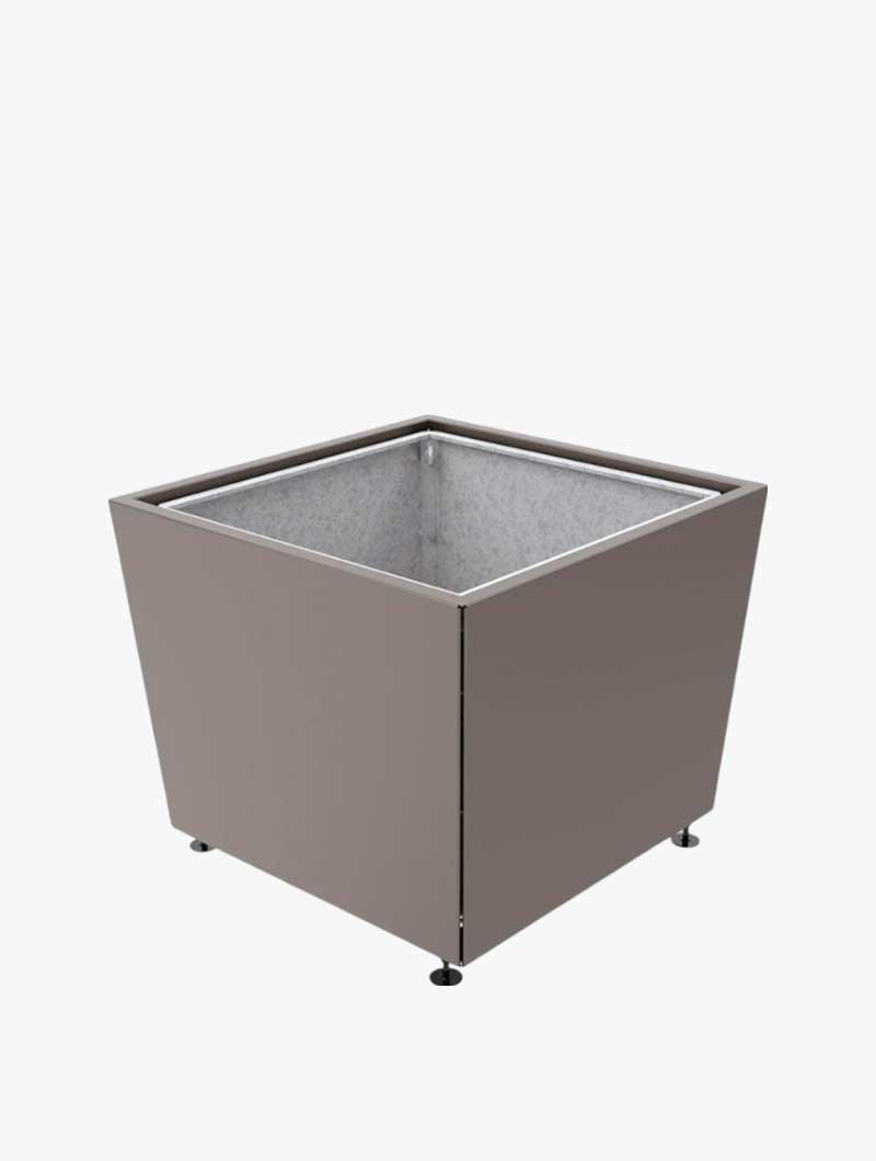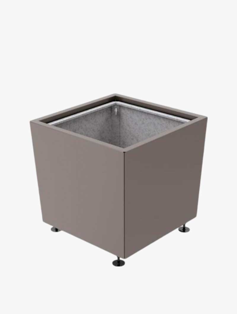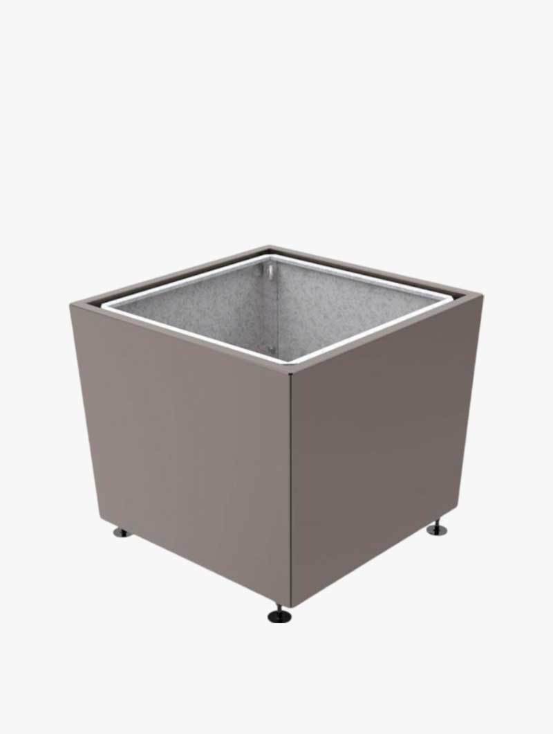 Una jardinera de diseño refinado que se adapta perfectamente a los entornos clásicos y modernos. De forma cuadrada, la línea Jade es estética y robusta. Armazón de tubo de acero galvanizado. Revestimiento de chapa de acero galvanizado de 2 mm de espesor para los de 800 x 800 y 995 x 995 mm, 2,5 mm de espesor para los de 1170 x 1170 mm, acabado de pintura sobre galvanizado según nuestra gama de colores. Con revestimiento de chapa de acero galvanizado o cubo interior extraíble en acero con asas de manutención.