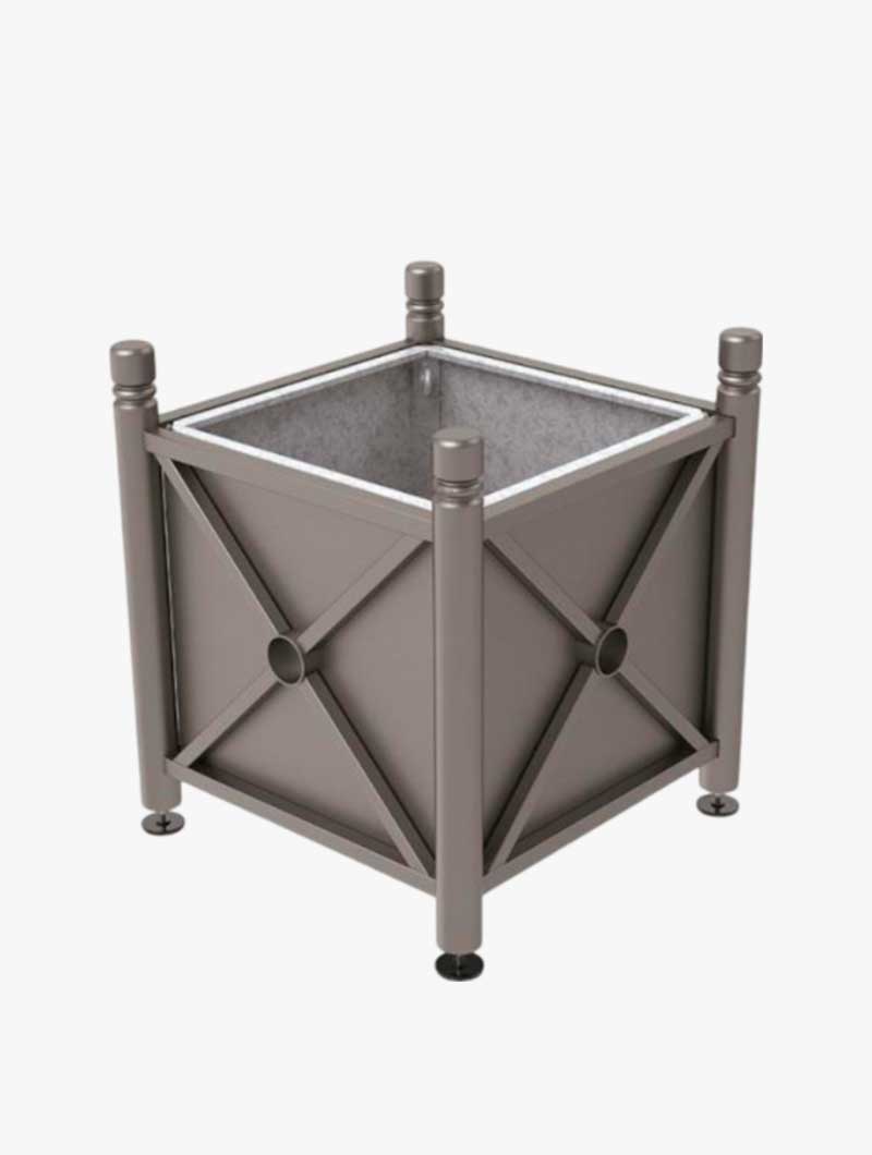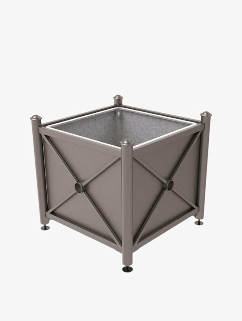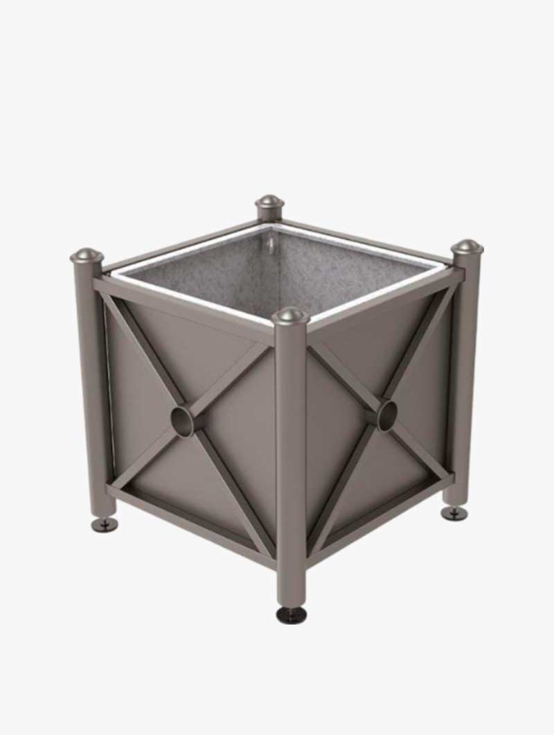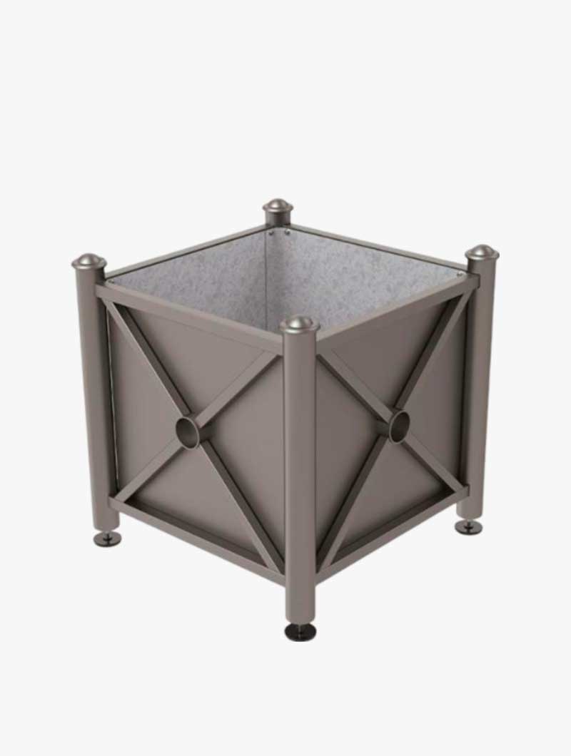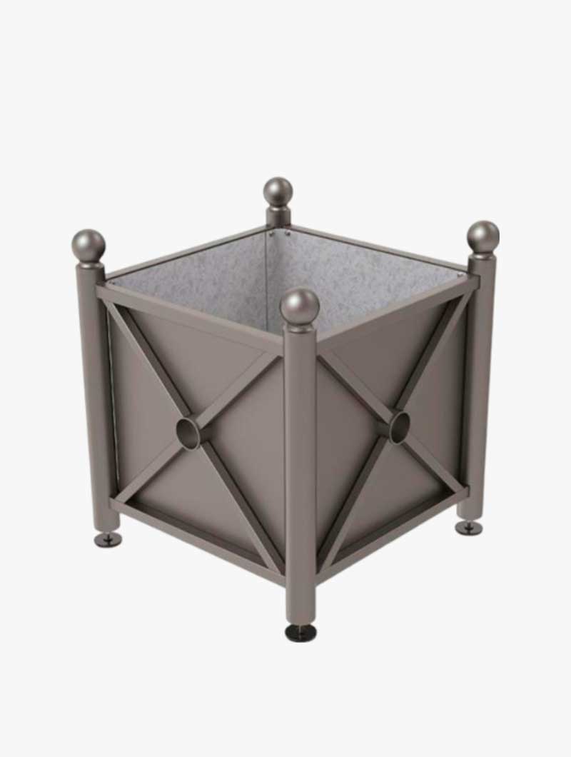 Jardinera Lirio para exterior con un diseño clásico con la posibilidad de personalizar el conjunto eligiendo un cabezal decorativo. Disponible en una combinación de acero y madera, o bien totalmente fabricado en acero. Asimismo, también esta la opción de seleccionar entre tres diseños distintos de cabezales o prescindir de ellos según su preferencia. Disponible en con dos interiores distintos: uno con revestimiento de chapa de acero galvanizado y otro con cubo interior extraible en acero con asas de manutención.