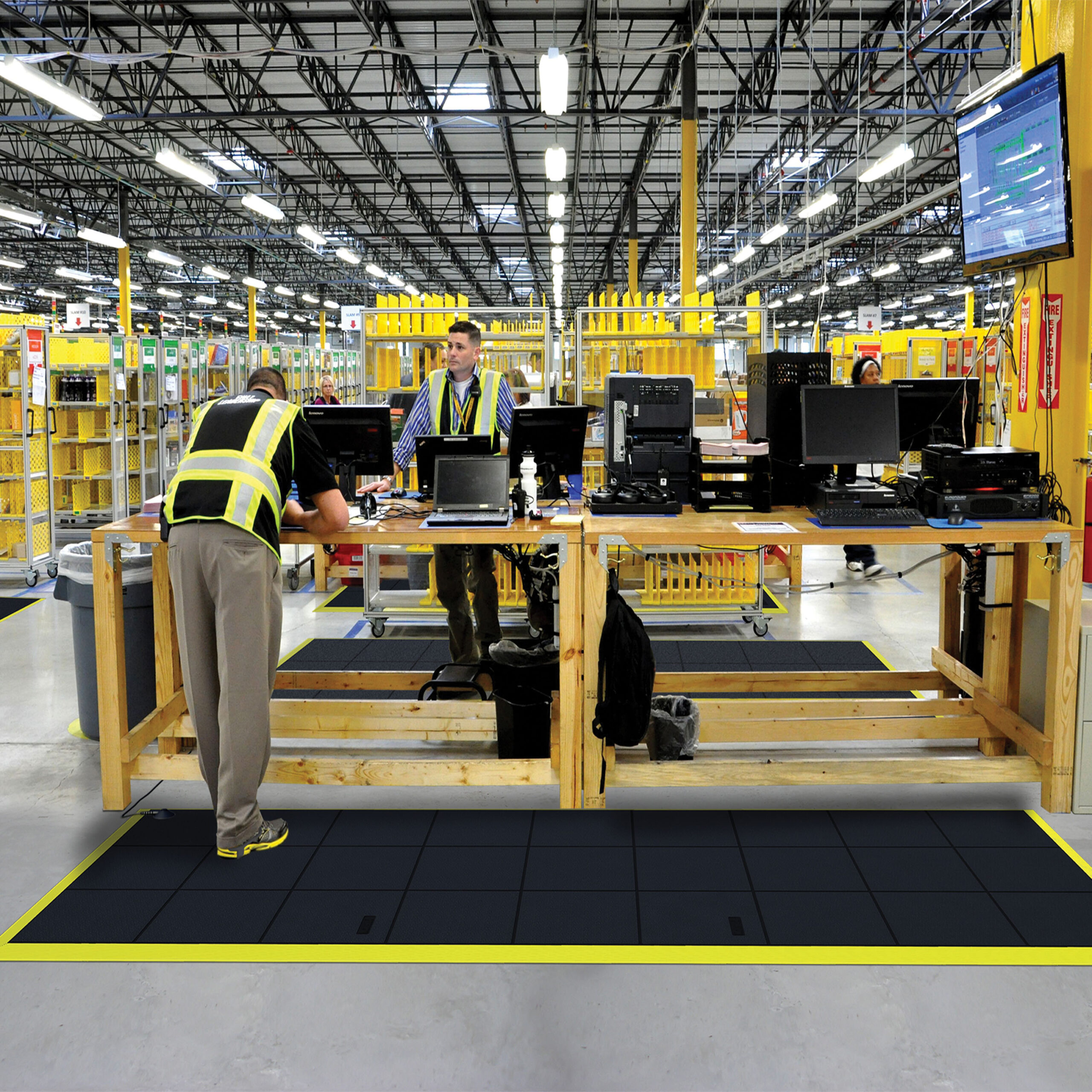 La loseta de caucho nitrilo y ESD de grandes cargas mejora la ergonomía en el puesto de trabajo y aumenta la productividad.