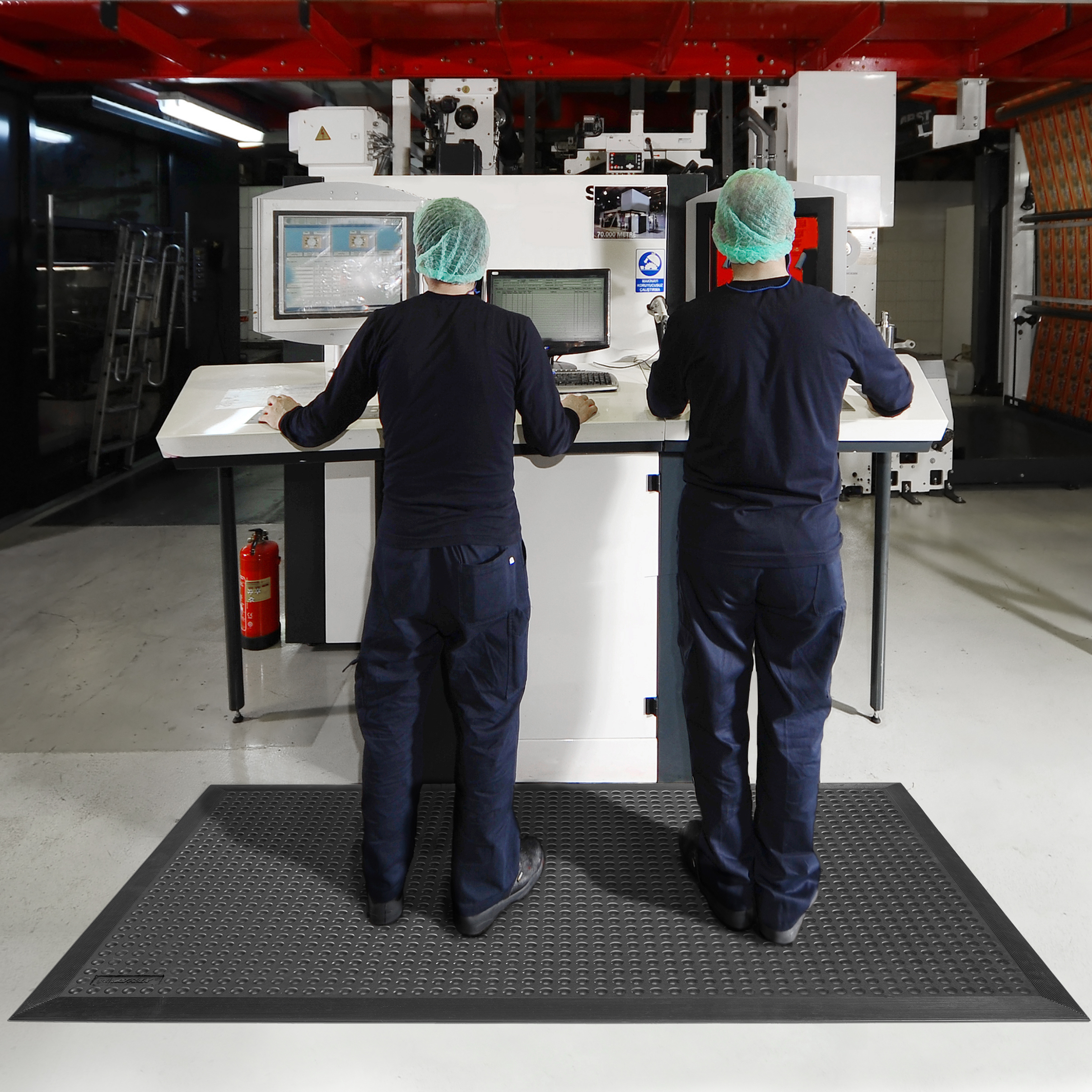 La variante en goma de nitrilo ofrece una alta resistencia frente a aceites vegetales, grasas animales y productos industriales, por lo que resulta idónea para entornos alimentarios, talleres y áreas de producción. Por su parte, el modelo ESD está diseñado para disipar la electricidad estática, protegiendo tanto a las personas como a los equipos electrónicos. Cumple con la normativa IEC 61340-4-1 y puede incorporar un cable de conexión a tierra para garantizar un mayor nivel de seguridad.