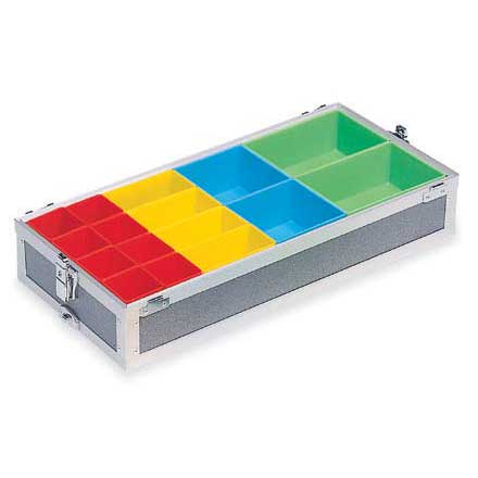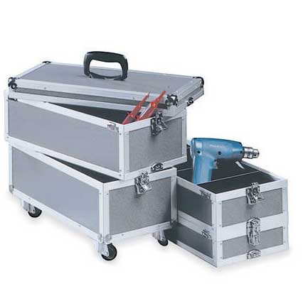 Maletines de aluminio apilables entre ellos sin necesidad de seguir un roden. Ideal para transportar todo el material necesario para cualquier aplicación y coger solo las cajas que se precisen para cada uso. Paneles tipo sandwich en aluminio anodizado de altar resistencia. Cerradura automática con llave. Esquinas reforzadas con protector de acero y patas integradas en la parte inferior. Bisagras reforzadas. Disponibles en 3 alturas diferentes: 60, 80 y 100 mm. Laterales con espuma protectora.