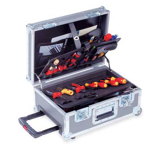 Maleta de transporte para herramientas, reforzada para uso muy intenso y trato muy duro. Espacio adicional para documentos en la parte superior y/o en la bandeja intermedia. Doble panel porta-herramientas, desmontable y reemplazable mediante fijación de tornillo rápido. Divisores inferiores ajustables para fijar los diferentes surtidos de herramientas.