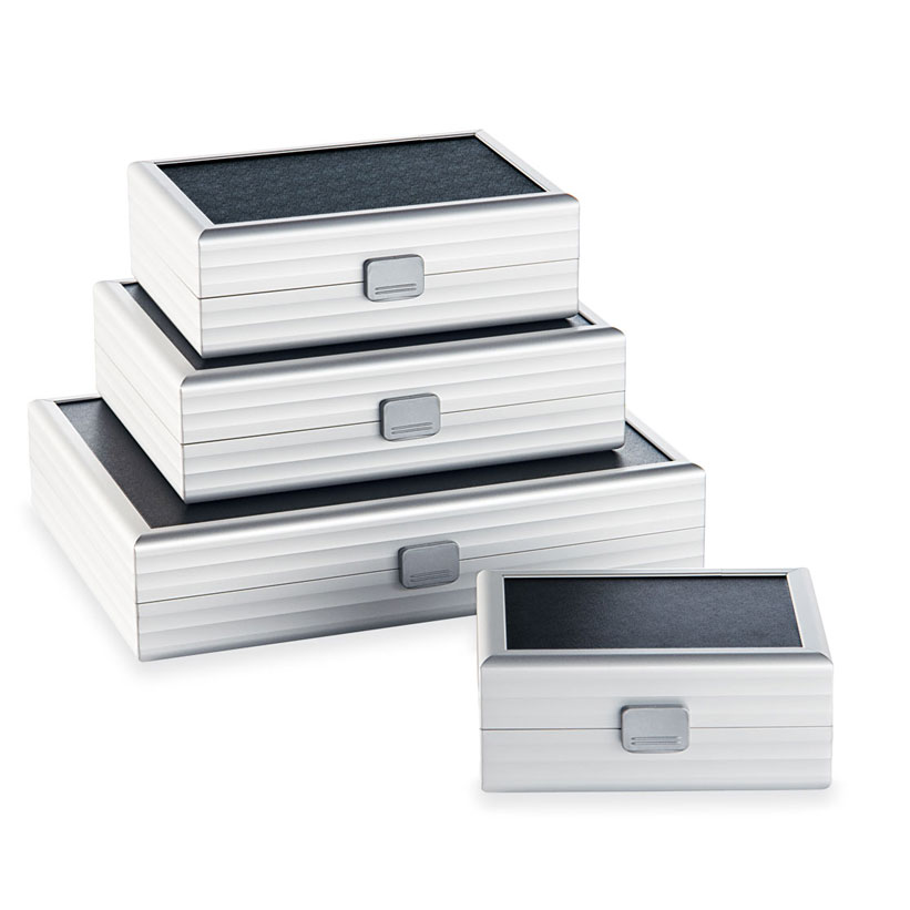Maleta con marco perimetral de aluminio extruído y panel laminado en plástico ABS de alta resistencia.