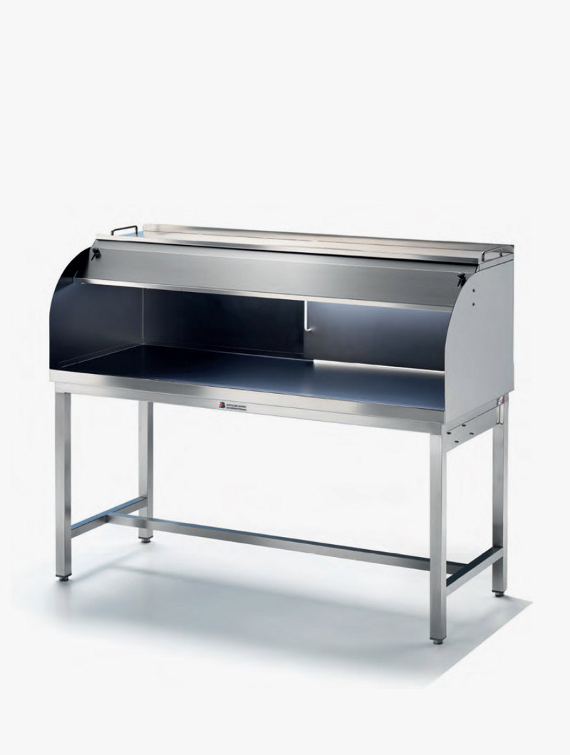 Mesa diseñada para entornos que requieren máxima protección y limpieza, equipada con cúpula de aislamiento que permite trabajar con seguridad en procesos delicados. Fabricada íntegramente en acero inoxidable AISI 304 Cr-Ni 18/10, ofrece una gran resistencia a la corrosión y una durabilidad superior incluso en condiciones exigentes.