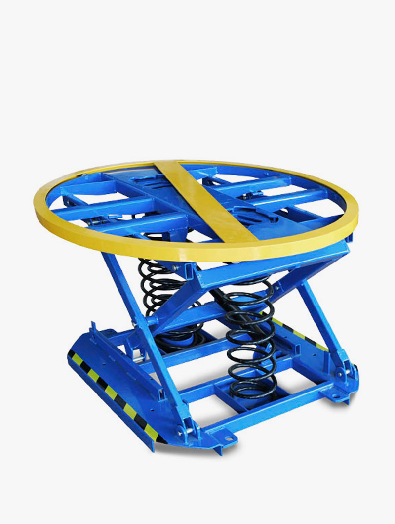 Cuando el peso varía, la mesa elevadora de tijera con muelles compensa la diferencia mediante la compresión o expansión de los resortes, garantizando un movimiento suave y controlado. Su plataforma giratoria facilita el acceso a todos los lados del palet o la mercancía, evitando desplazamientos innecesarios y mejorando la eficiencia del operario. Gracias a su diseño robusto y estable, es perfecta para líneas de montaje, zonas de picking o estaciones de embalaje donde se requiere mantener una altura de trabajo constante sin intervención eléctrica.
