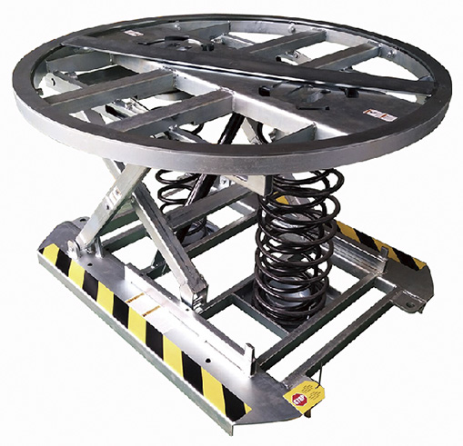 Su sistema de resortes calibrados permite que la plataforma se autorregule automáticamente en función del peso de la carga, manteniéndola siempre a una altura óptima para el operario.