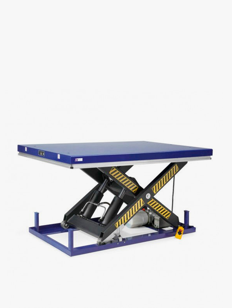 La fuerza de elevación de la Mesa elevadora eléctrica de tijera simple se genera a través de uno o dos cilindros oleohidráulicos fijados en el interior del mecanismo de tijera. Cada cilindro incorpora una válvula de control que limita la velocidad de descenso hasta el 50% de la admitida por el circuito hidráulico, proporcionando un movimiento controlado y seguro. Dispone de unidad de potencia integrada en el chasis, listón de contacto perimetral en aluminio con parada automática ante obstáculos y control de paro mediante final de carrera.
