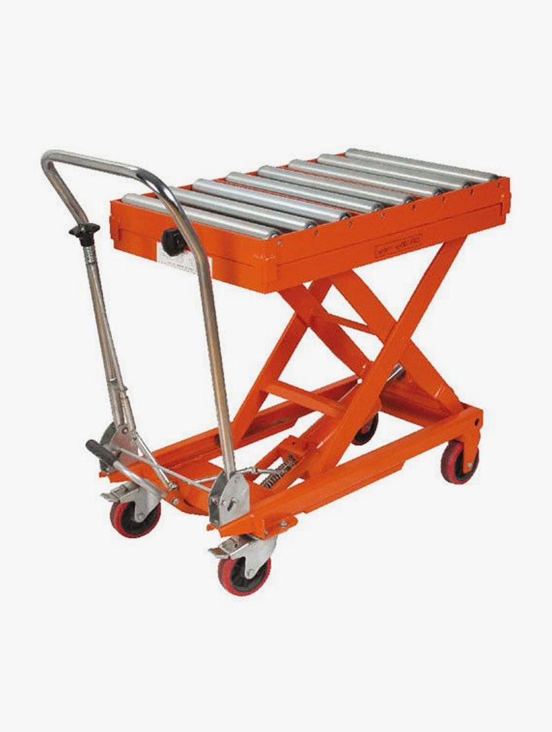 Su diseño combina movilidad, elevación y transporte lineal, facilitando el trabajo en distintos puntos de la instalación sin necesidad de esfuerzo físico adicional por parte del operario.