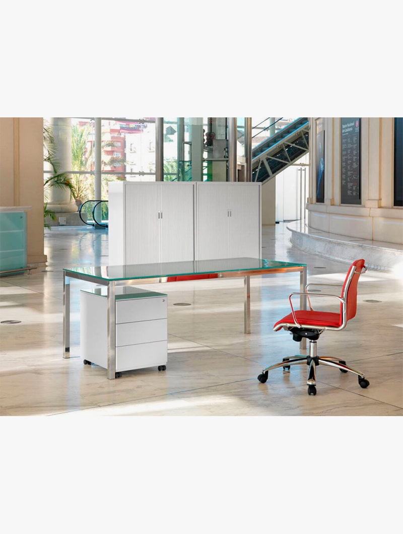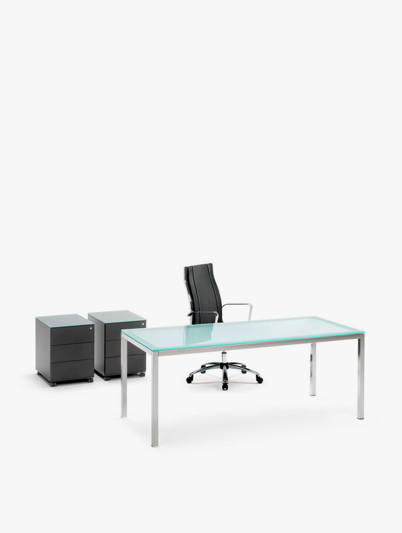 Las mesas de oficina de la serie KABER están diseñadas con una estructura robusta de acero cromado con sección rectangular.
