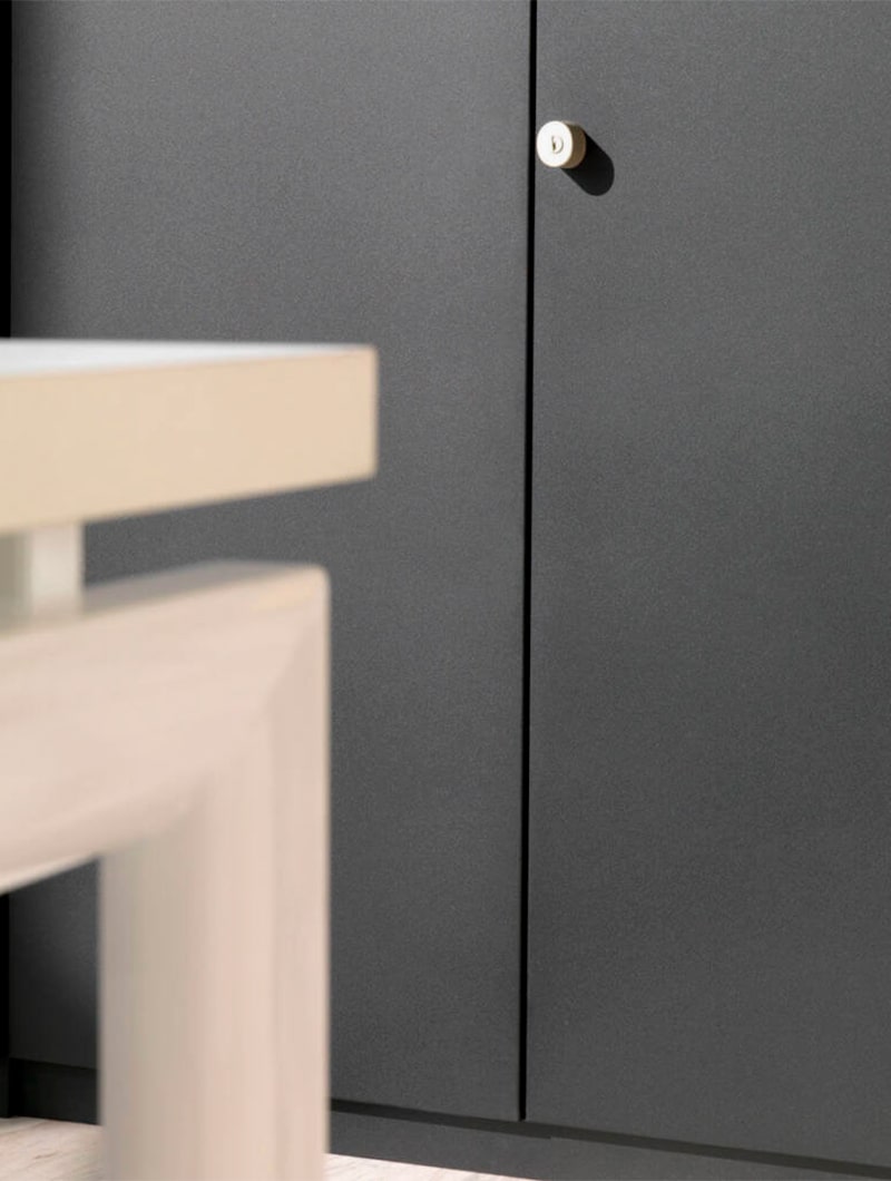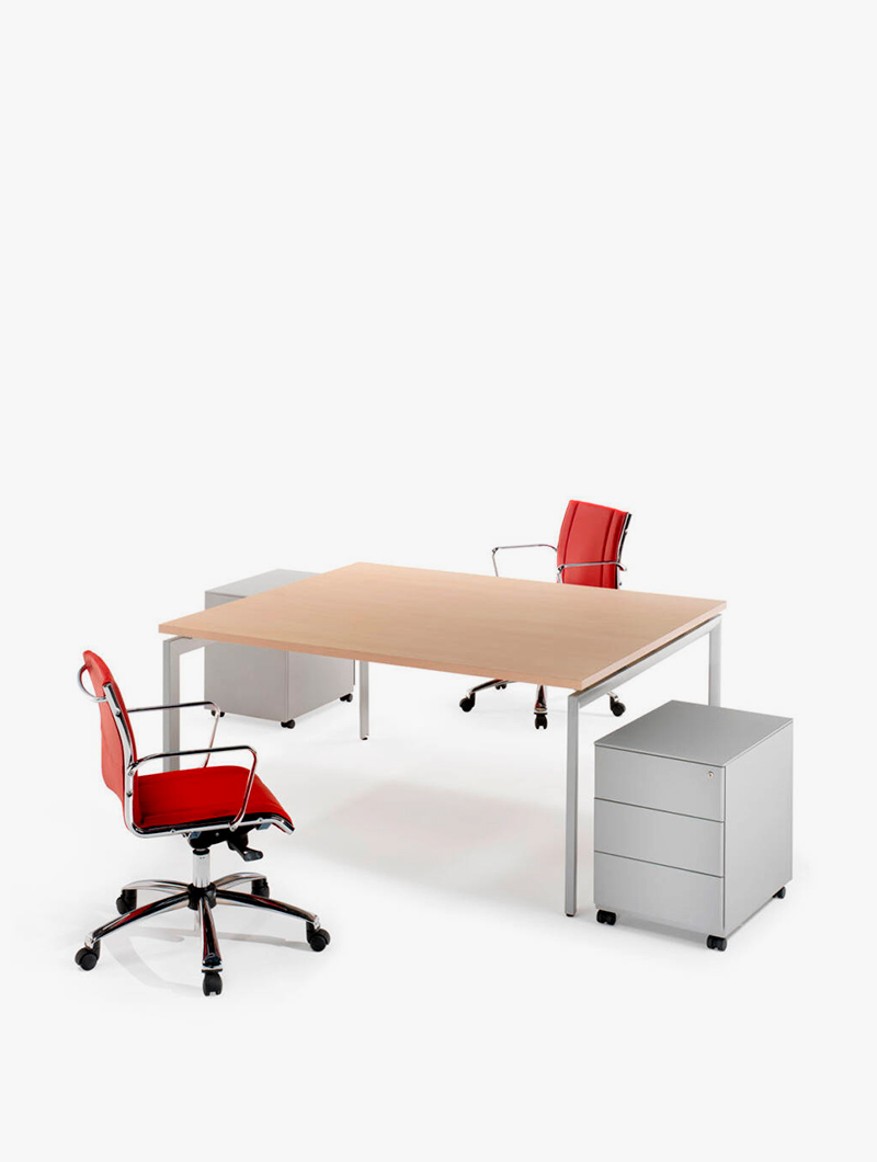 Las mesas de oficina de la serie SALMA están diseñadas con una estructura robusta de acero pintado con sección de cuarto de luna.