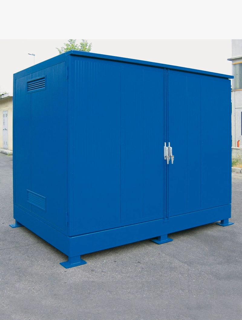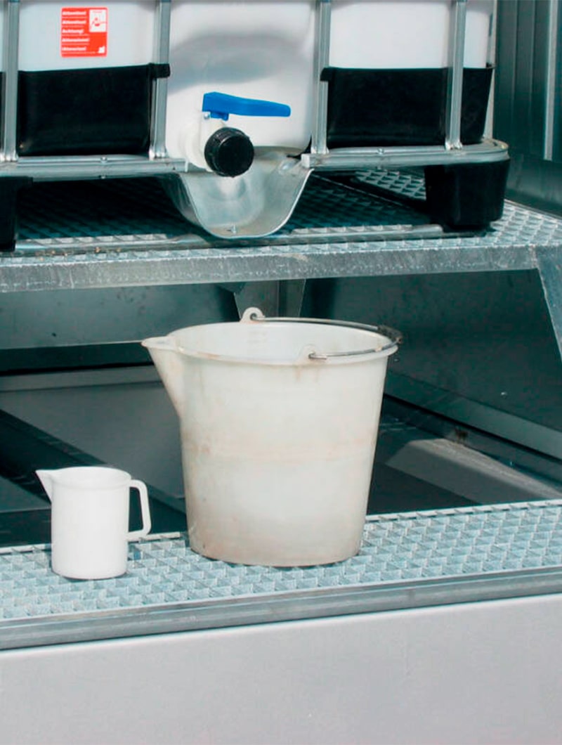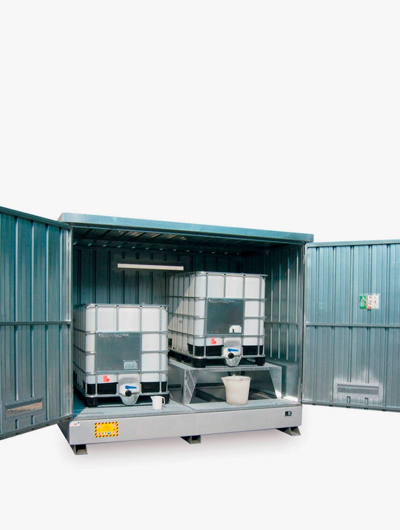 Cuentan con cubeto de retención de 1000 litros integrado en la base de la estructura del módulo. Opcionalmente se le puede poner un revestimiento interior antiácido o hacer todo el cubeto en acero inoxidable que permite el almacenamiento de sustancias corrosivas.