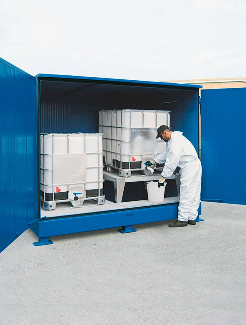 Módulo de almacenamiento exterior para almacenar 2 cisternas KTC/IBC.
