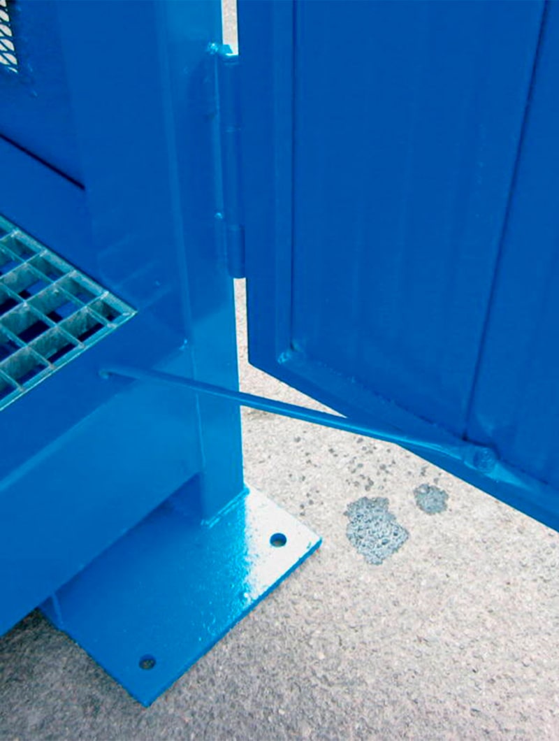 El suelo está formado por rejilla galvanizada extraíble para facilitar las tareas de limpieza del cubeto.