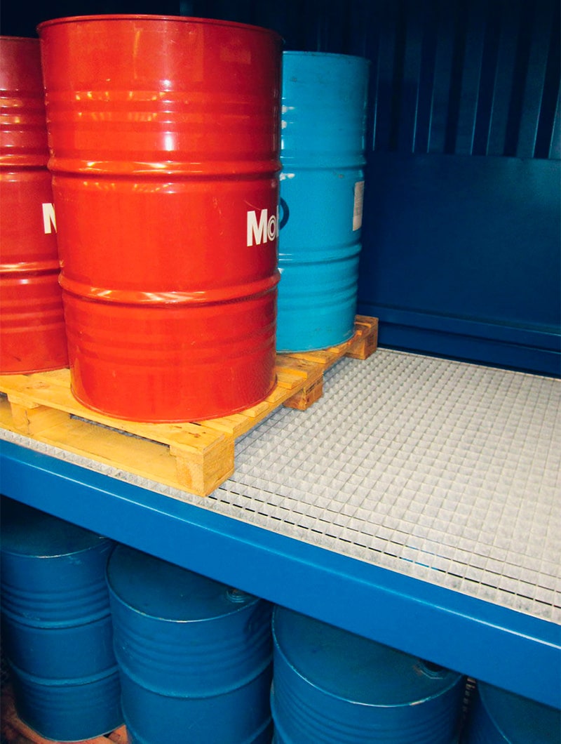 Rejillas en PE para almacenar productos corrosivos.
