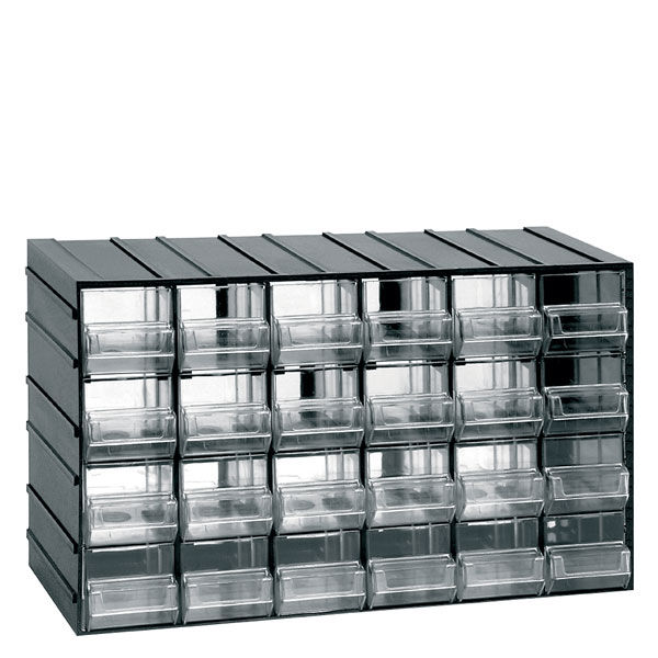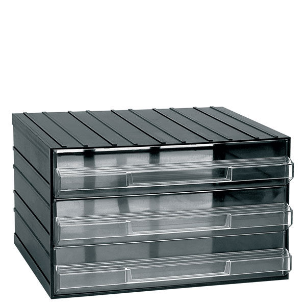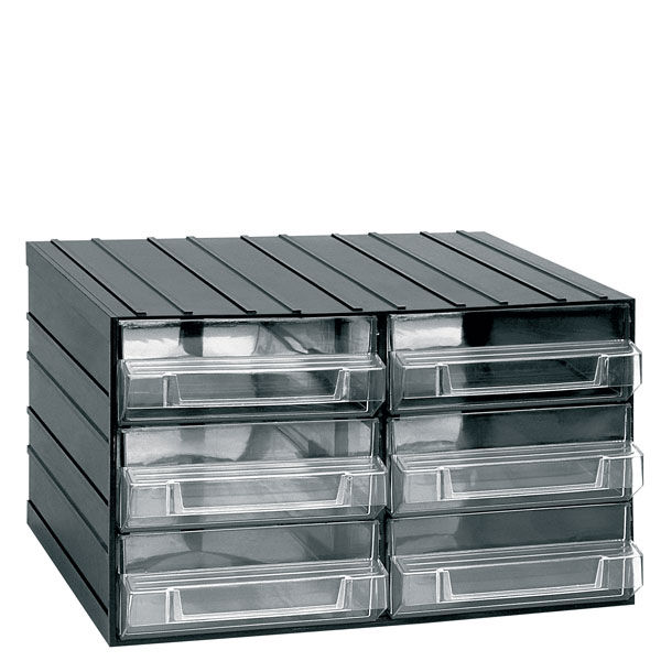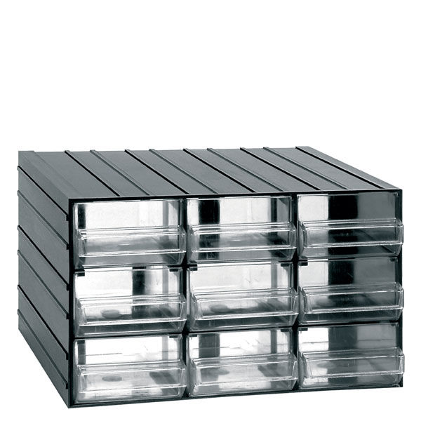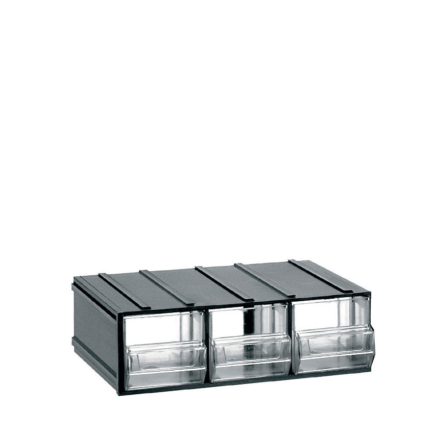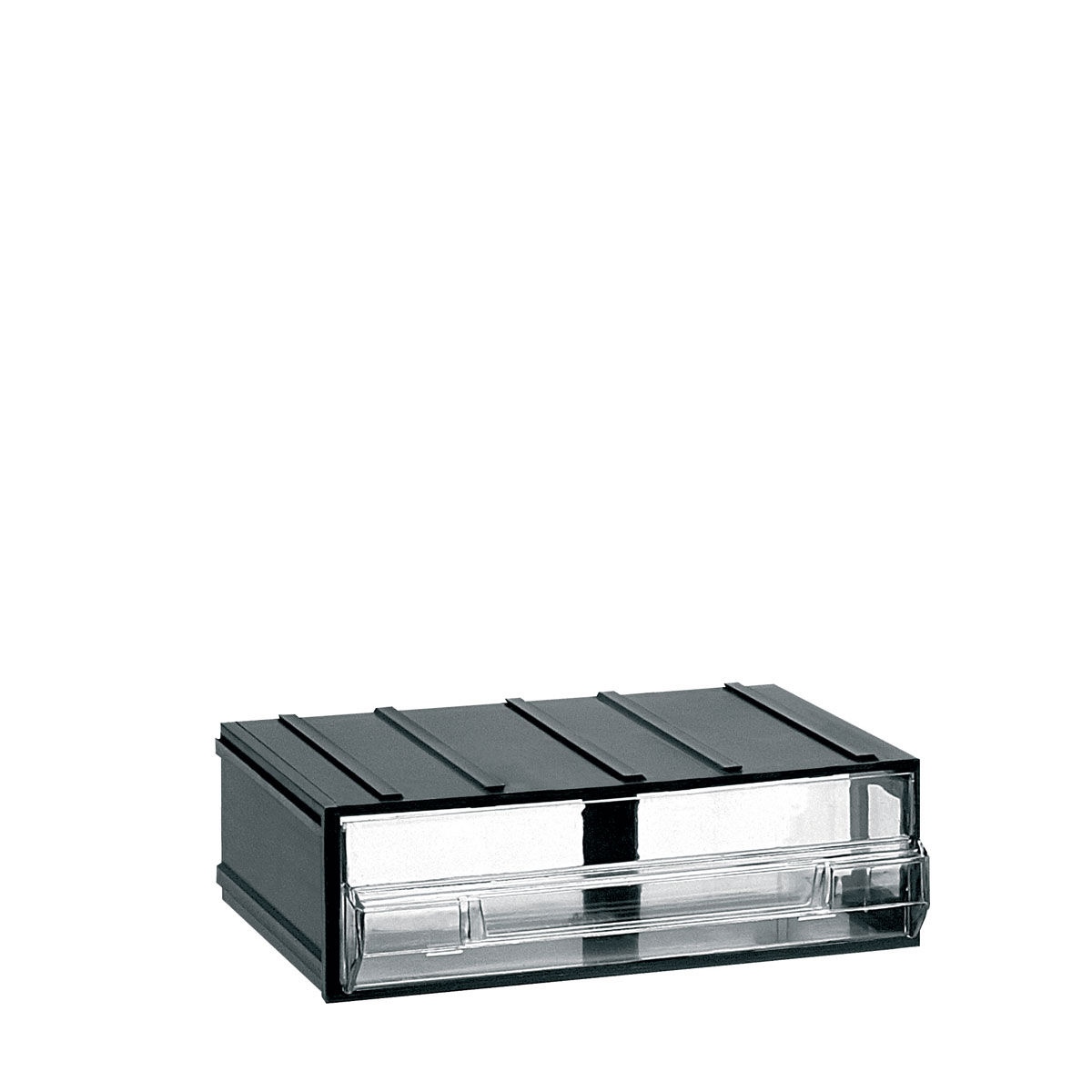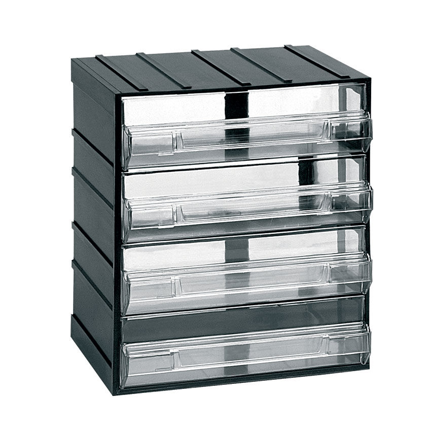 Cajones fabricados en poliestireno transparente elástico pero a la vez resistente a impactos que permiten ver fácilmente el contenido interior.