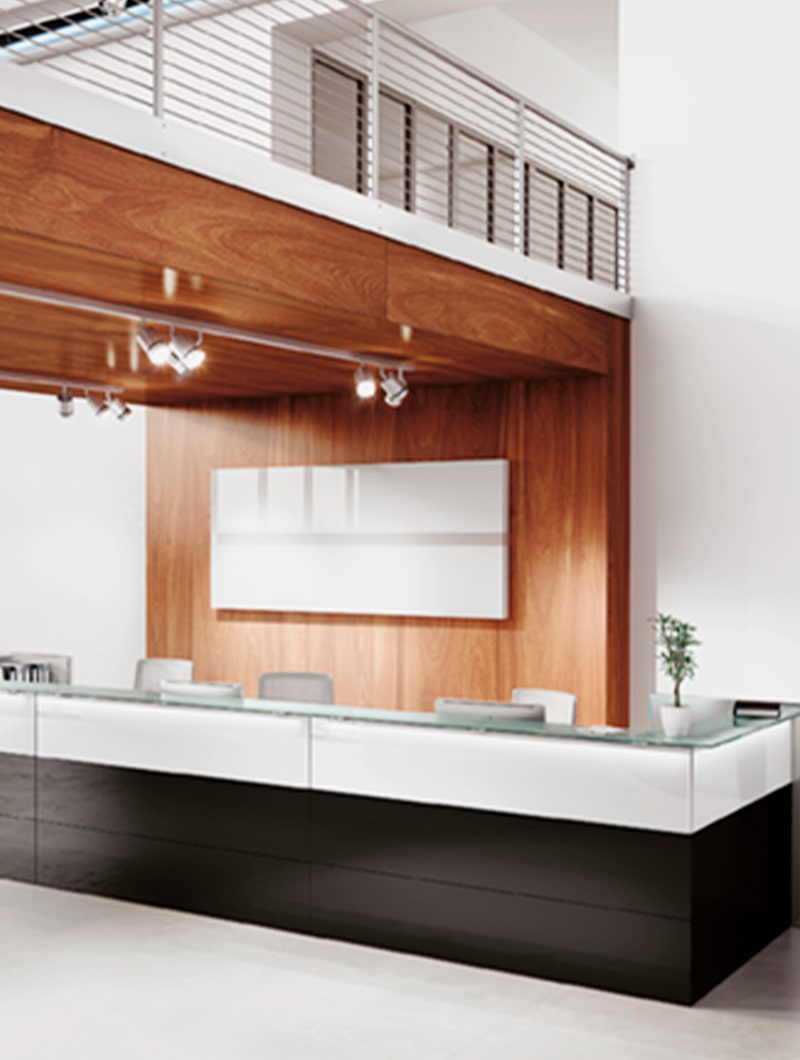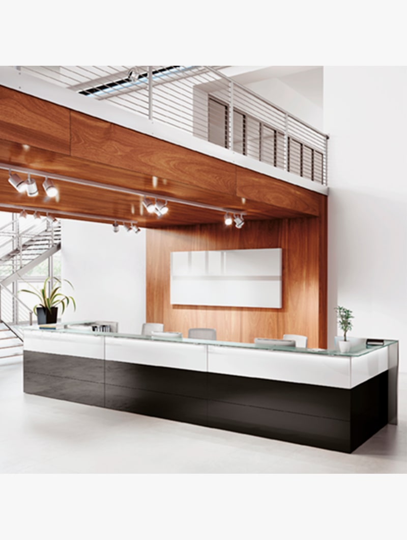 Nice es el nuevo concepto de sistema de recepción que no pasará desapercibido. Nice recibe, y lo hace de la mejor manera: con la elegancia de su mostrador de cristal lacado. Con la sofisticación de sus acabados, brillante y mate. Con las caras frontales en cristal satinado, marcando la orientación del área de recepción. Las líneas son técnicamente perfectas.