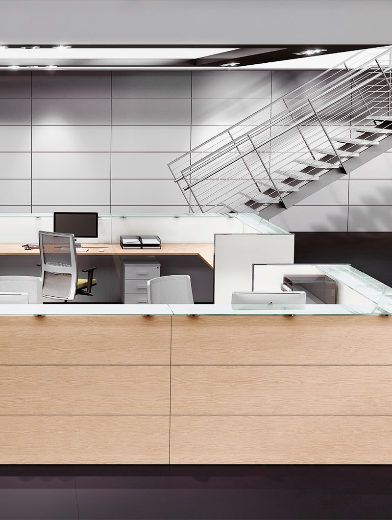 Nice es el nuevo concepto de sistema de recepción que no pasará desapercibido. Nice recibe, y lo hace de la mejor manera: con la elegancia de su mostrador de cristal lacado. Con la sofisticación de sus acabados, brillante y mate. Con las caras frontales en cristal satinado, marcando la orientación del área de recepción. Las líneas son técnicamente perfectas.