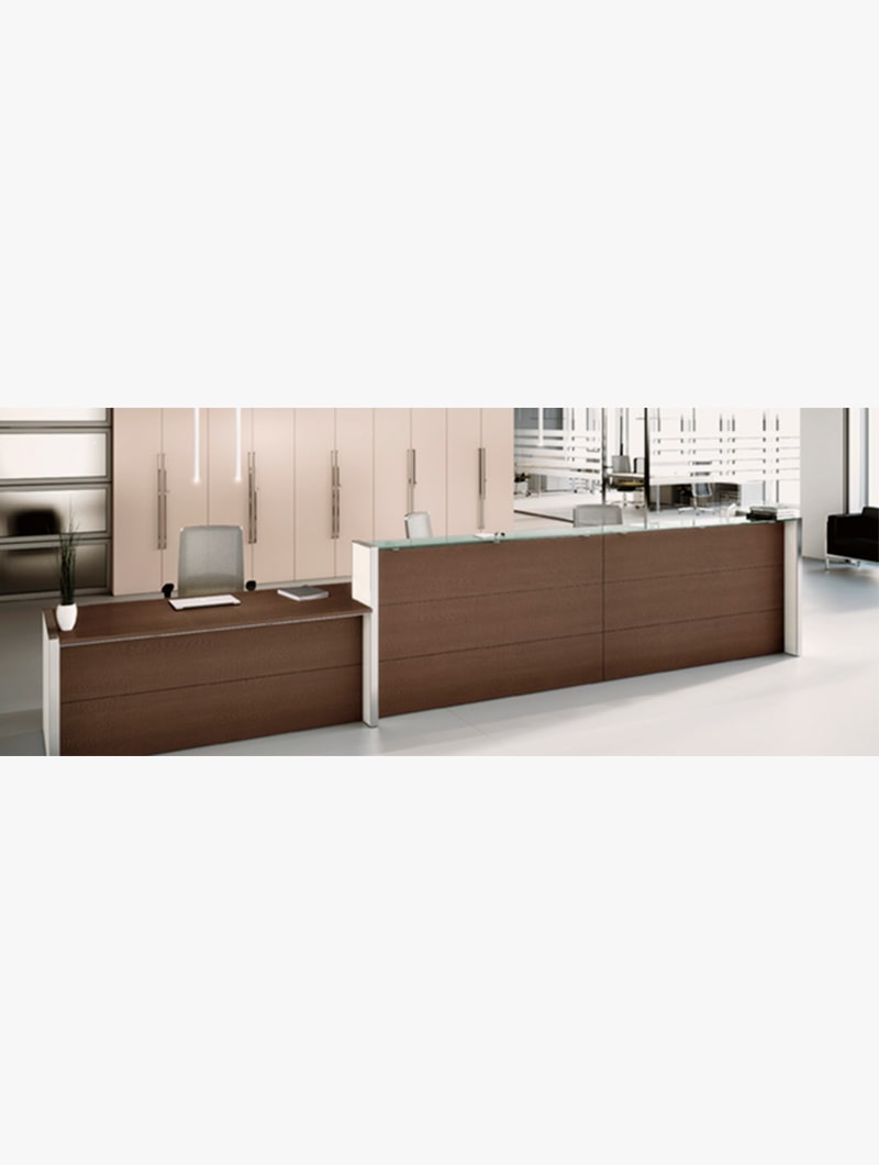 Nice es el nuevo concepto de sistema de recepción que no pasará desapercibido. Nice recibe, y lo hace de la mejor manera: con la elegancia de su mostrador de cristal lacado. Con la sofisticación de sus acabados, brillante y mate. Con las caras frontales en cristal satinado, marcando la orientación del área de recepción. Las líneas son técnicamente perfectas.