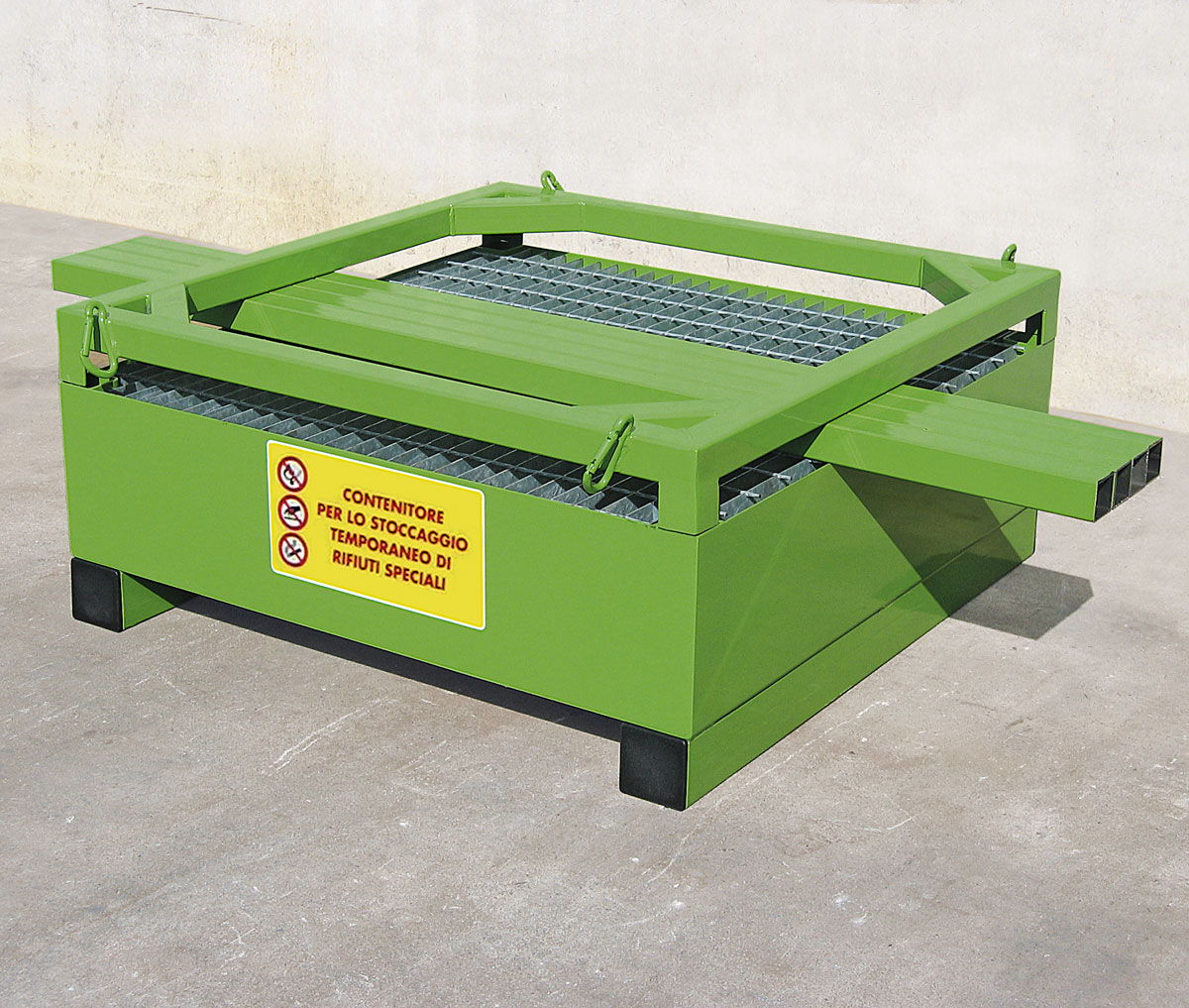 En la parte superior dispone de mosquetones para facilitar el enganche y la posterior manipulación con grúa.
