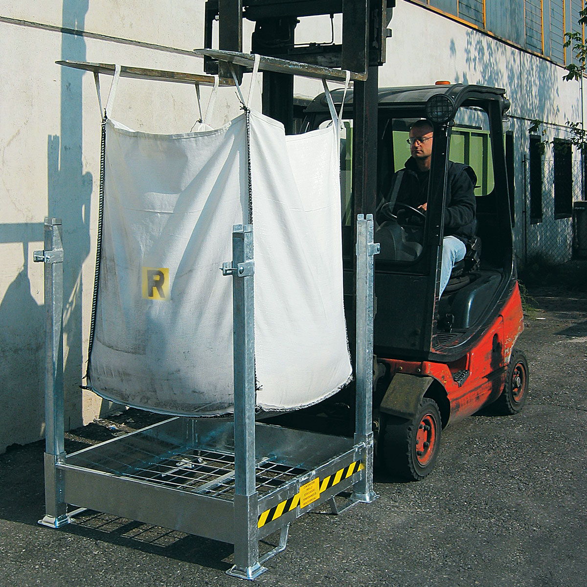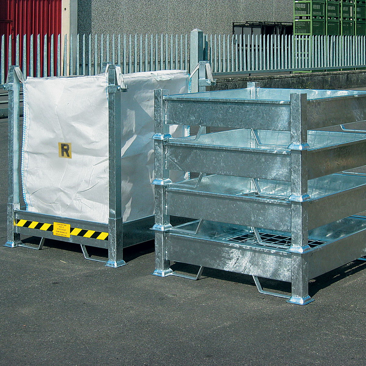 El palet desmontable y apilable está diseñado específicamente para alojar bolsas flexibles Big Bag de 1000 litros, siendo ideal para obras y fábricas donde se generan residuos o escombros de cualquier tipo.