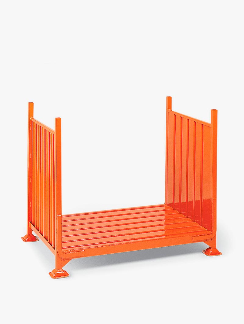 Palet metálico con patas montantes apilables y paredes en lado corto