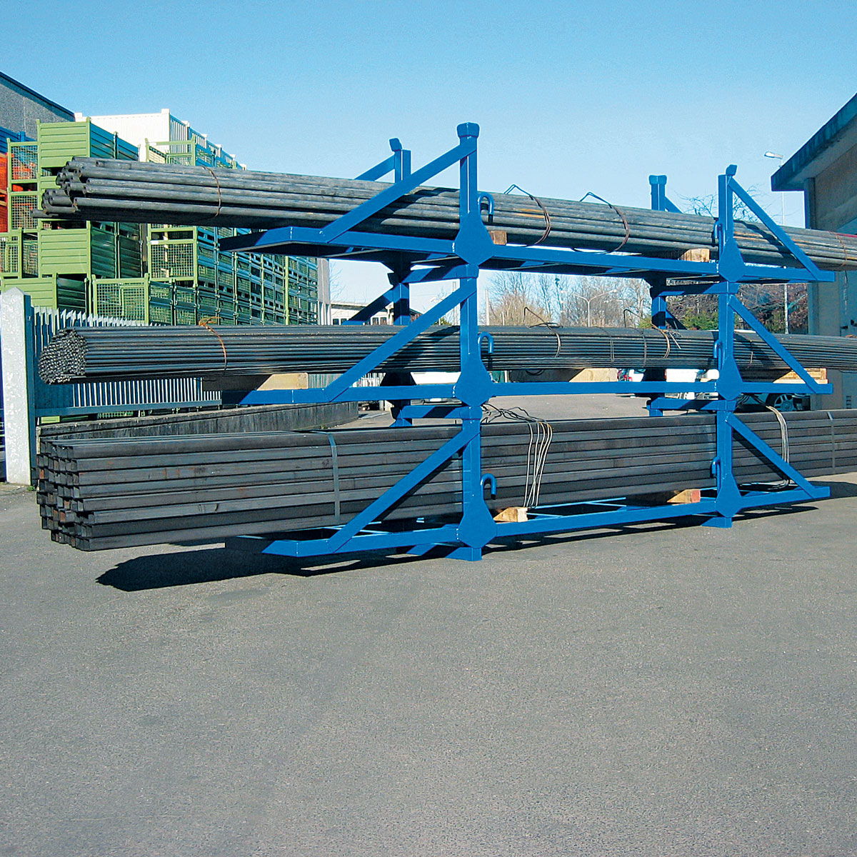Gracias a sus patas se pueden manipular con carretilla elevadora y disponen de montantes para su apilado.