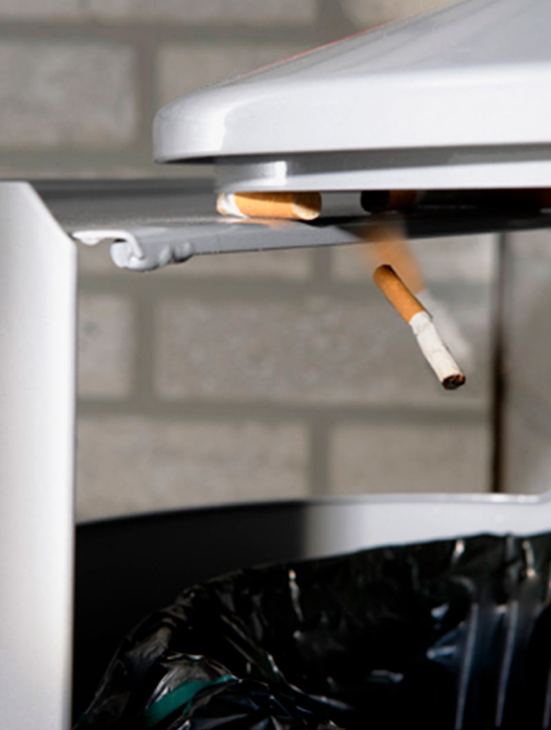 El cenicero se vacía automáticamente en el cubo de la basura al abrir la puerta.