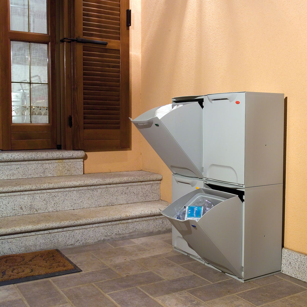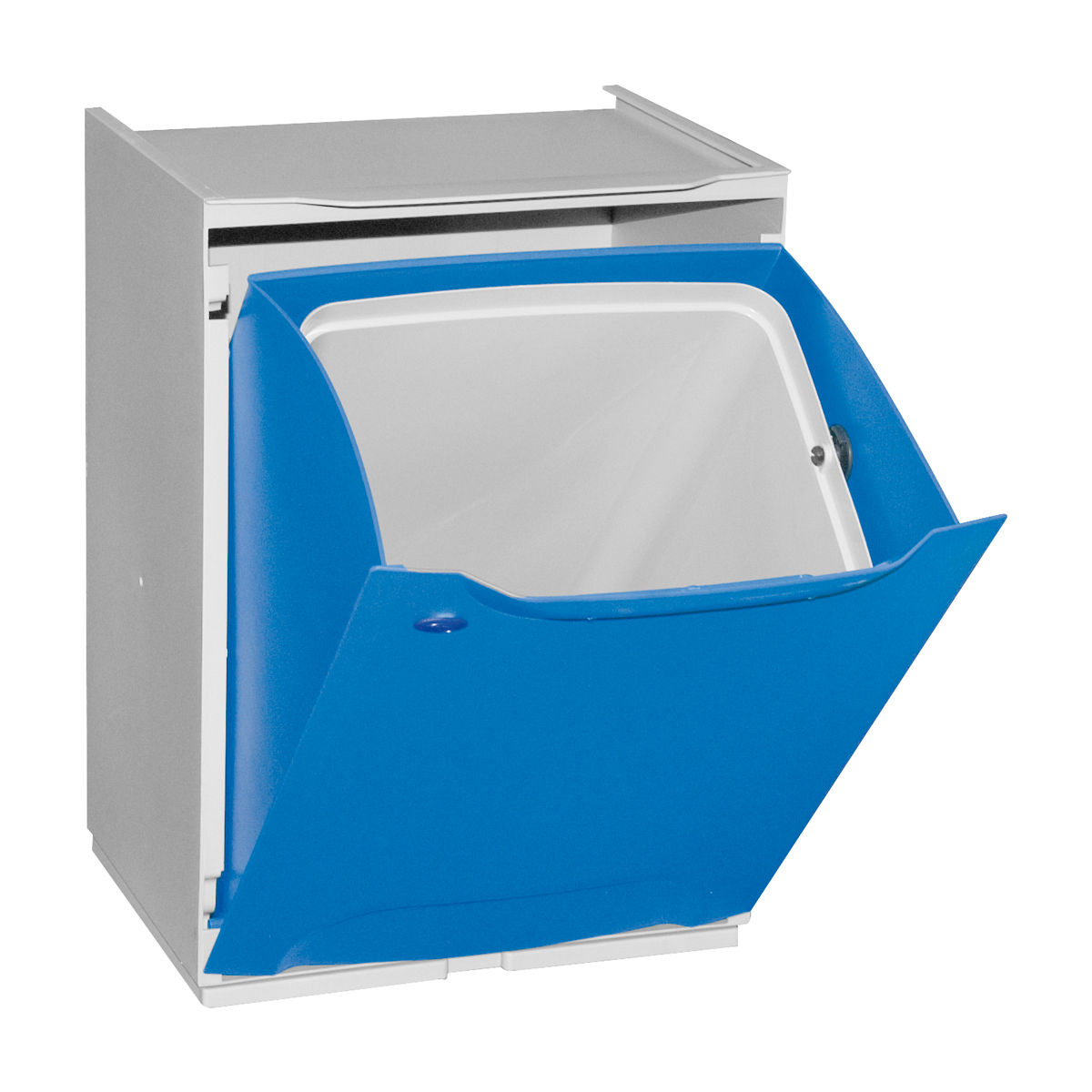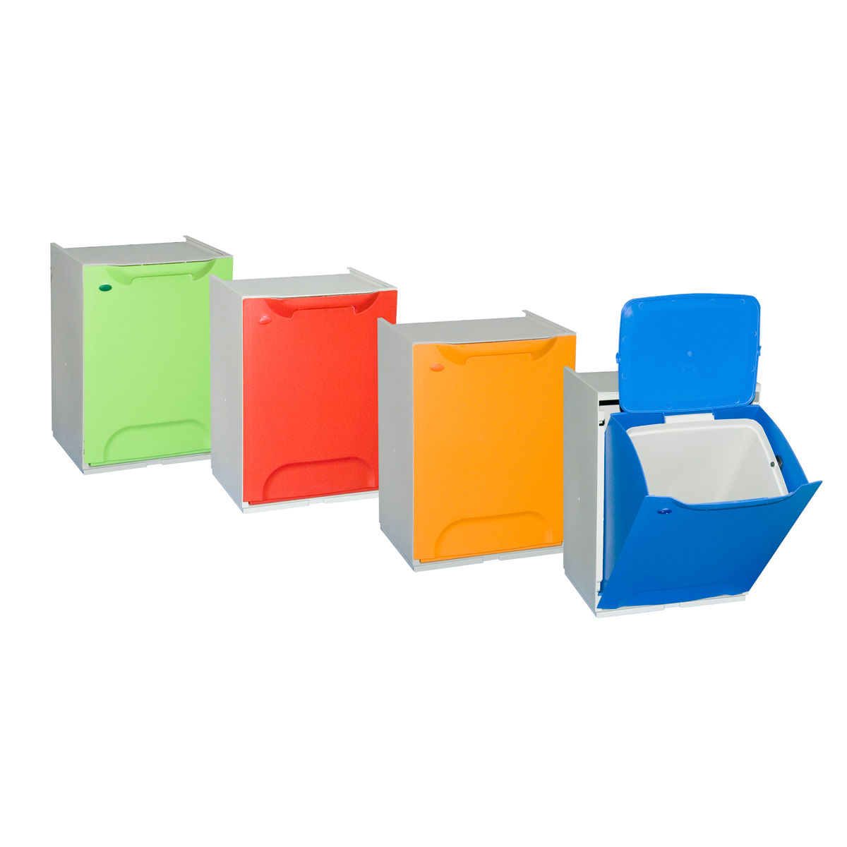 Las papeleras multiusos con tapa frontal abatible para la recogida selectiva de residuos son una solución económica y simple para mantener separados por tipos los residuos domésticos.