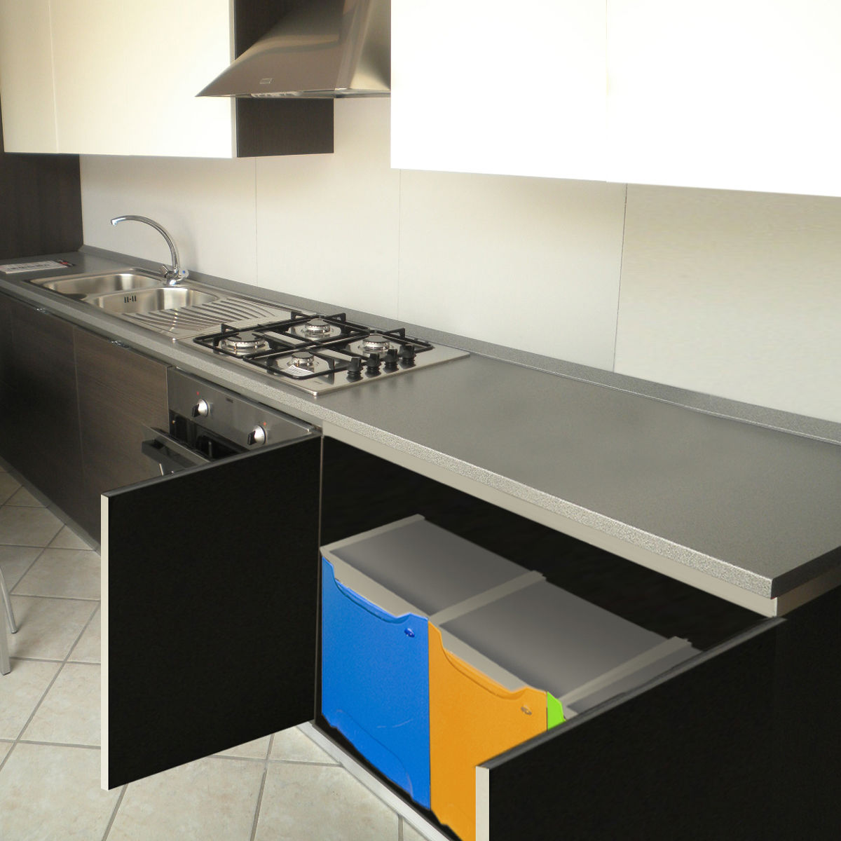 Ideales para meter debajo del fregadero. 3 papeleras ocupan 120cm en anchura.