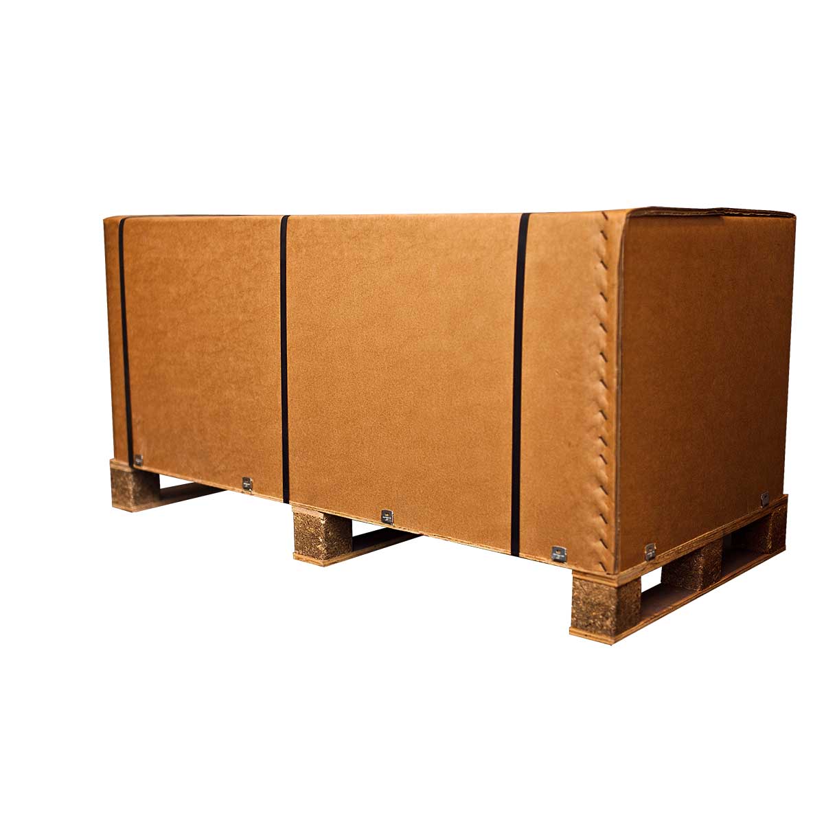 Permite cojer cajas o contenedores de cartóno madera con carretilla o transpaleta sin necesidad de palé adicional.