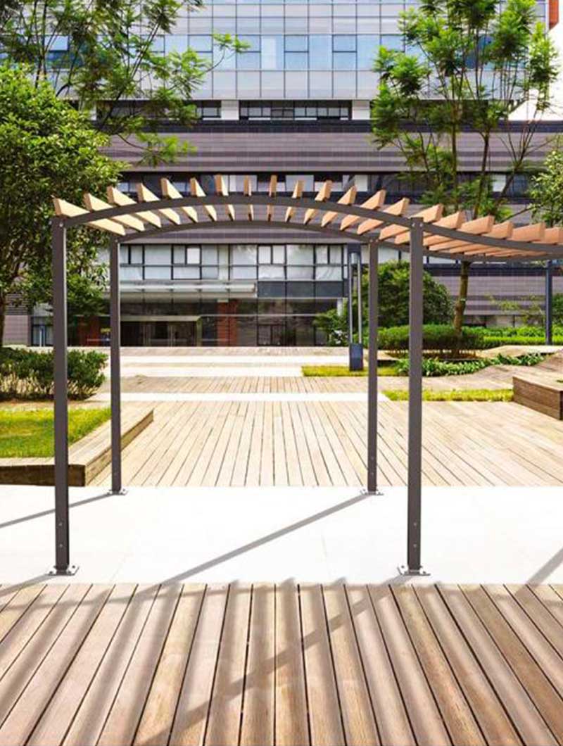 Elegante y fácil de integrar en las zonas urbanas gracias a su aspecto ondulado y la combinación de madera y acero.