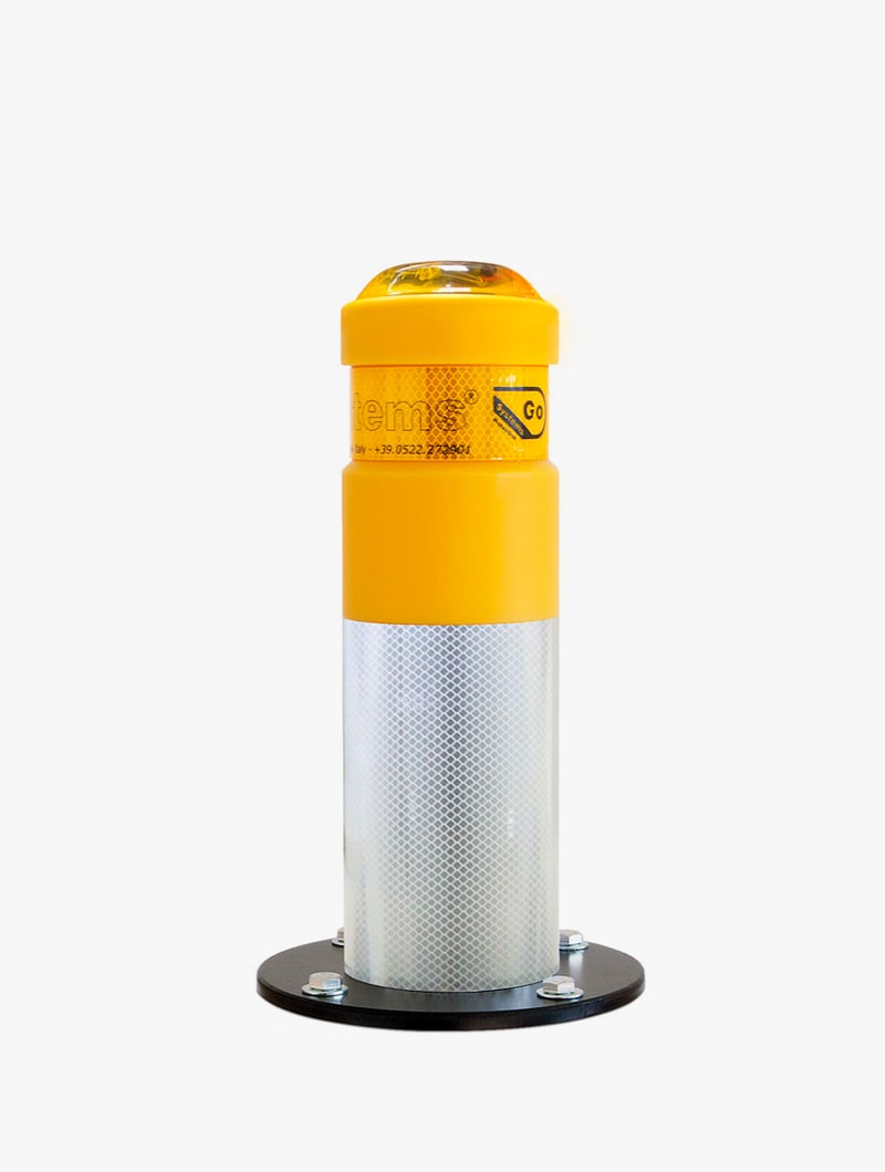 El palo anti-choque es fruto de un importante estudio de investigación en el campo de las lanzaderas automáticas guiadas por laser. Estas lanzaderas automáticas para circular necesitan puntos de referencia a lo largo de su recorrido, se ha conseguido instalando artefactos en estas pilonas que proporcionan estos puntos de referencia.