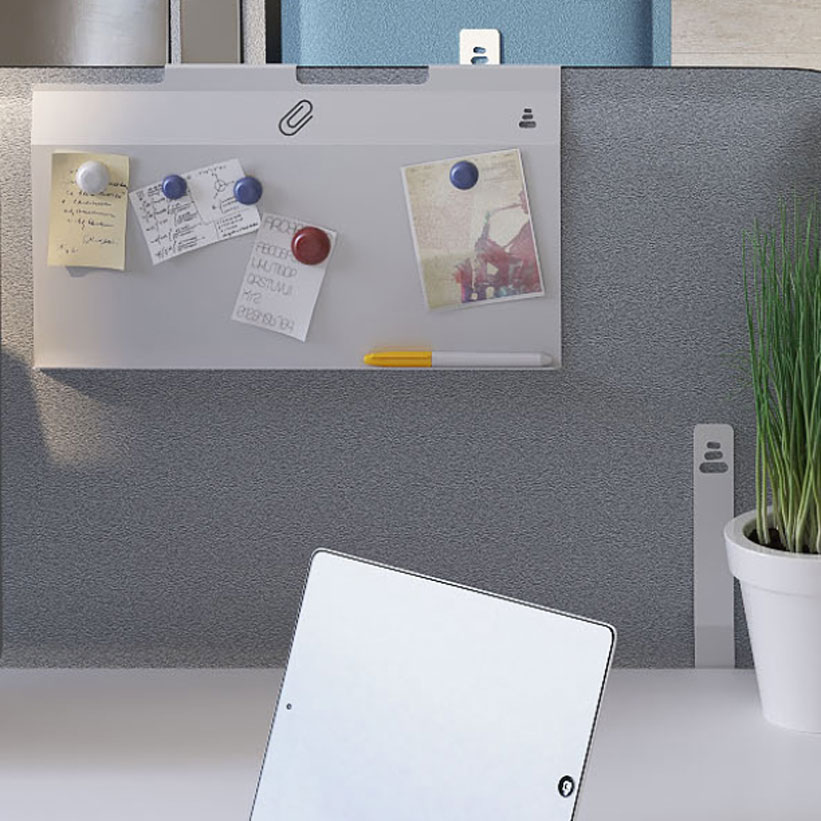 Porta lápices aplicable a los paneles fonoabsorbentes.