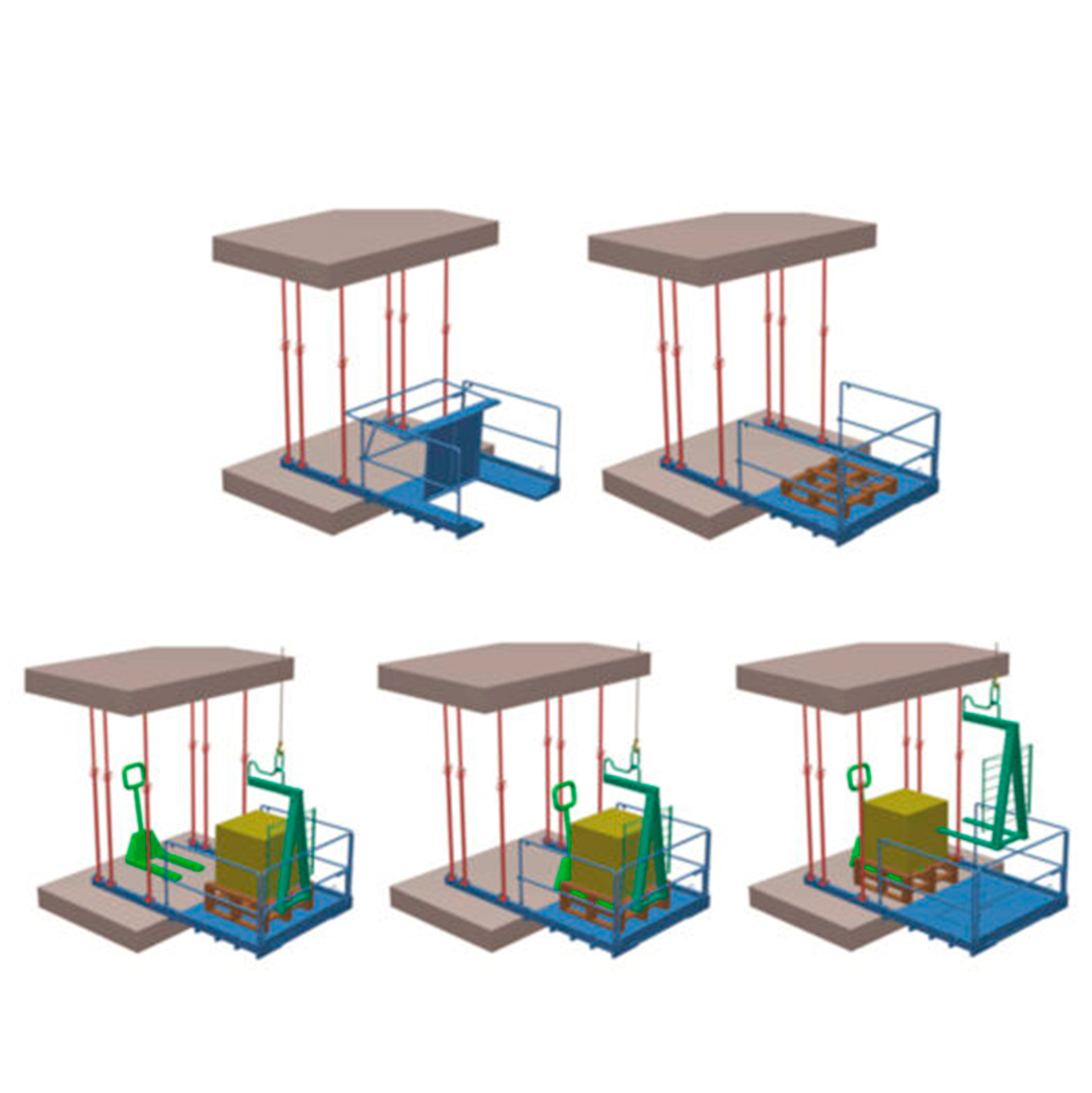 Cesta suspendida para usar en operaciones de levantamiento. Para grúa con diferentes dimensiones (para 1, 2, 3, 4 pax) con evacuación de emergencia. Levantamiento mediante 4 brazos con cadenas. VER PRODUCTO CON MÁS DETALLES