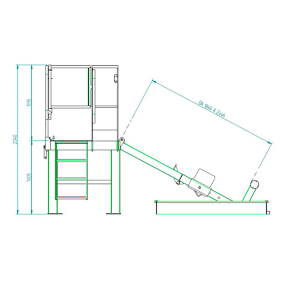 - Estación de lavado con bandeja de recuperación, escalera, barandilla de seguridad y entramado.
