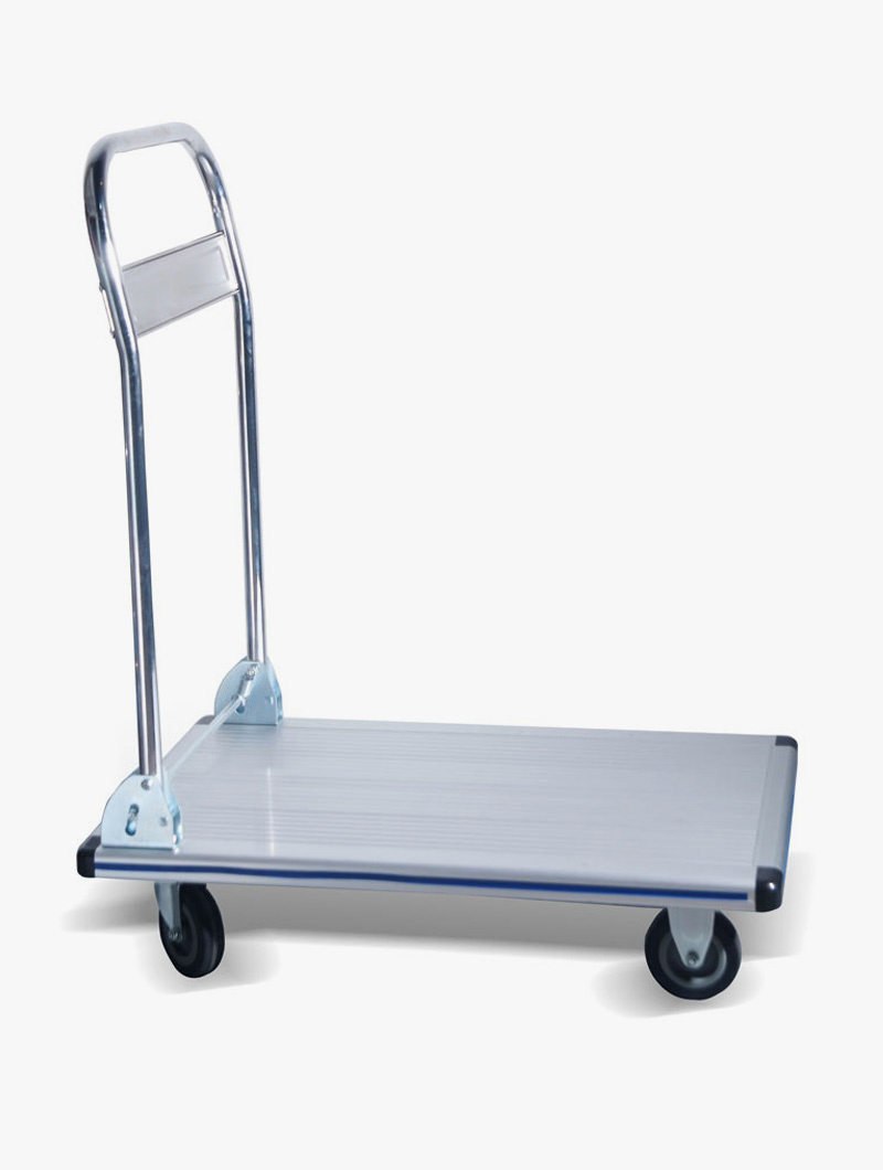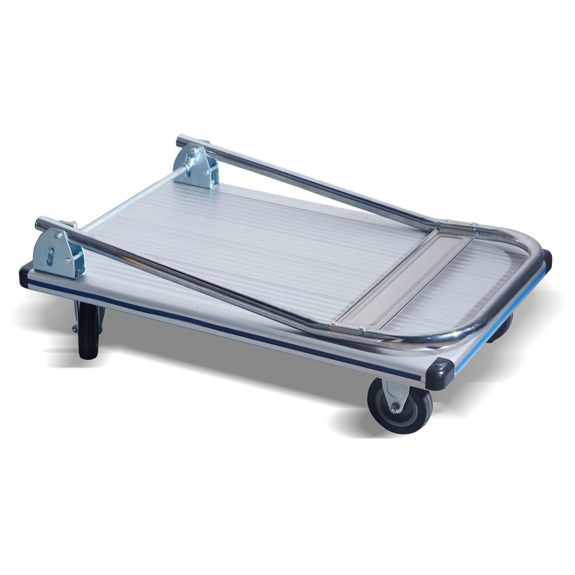 Plataforma de aluminio de bajo peso con construcción de base continua. Fácil de plegar, únicamente se baja el timón. Dispone de protectores en las esquinas para mayor seguridad.