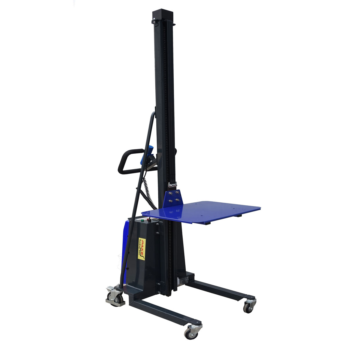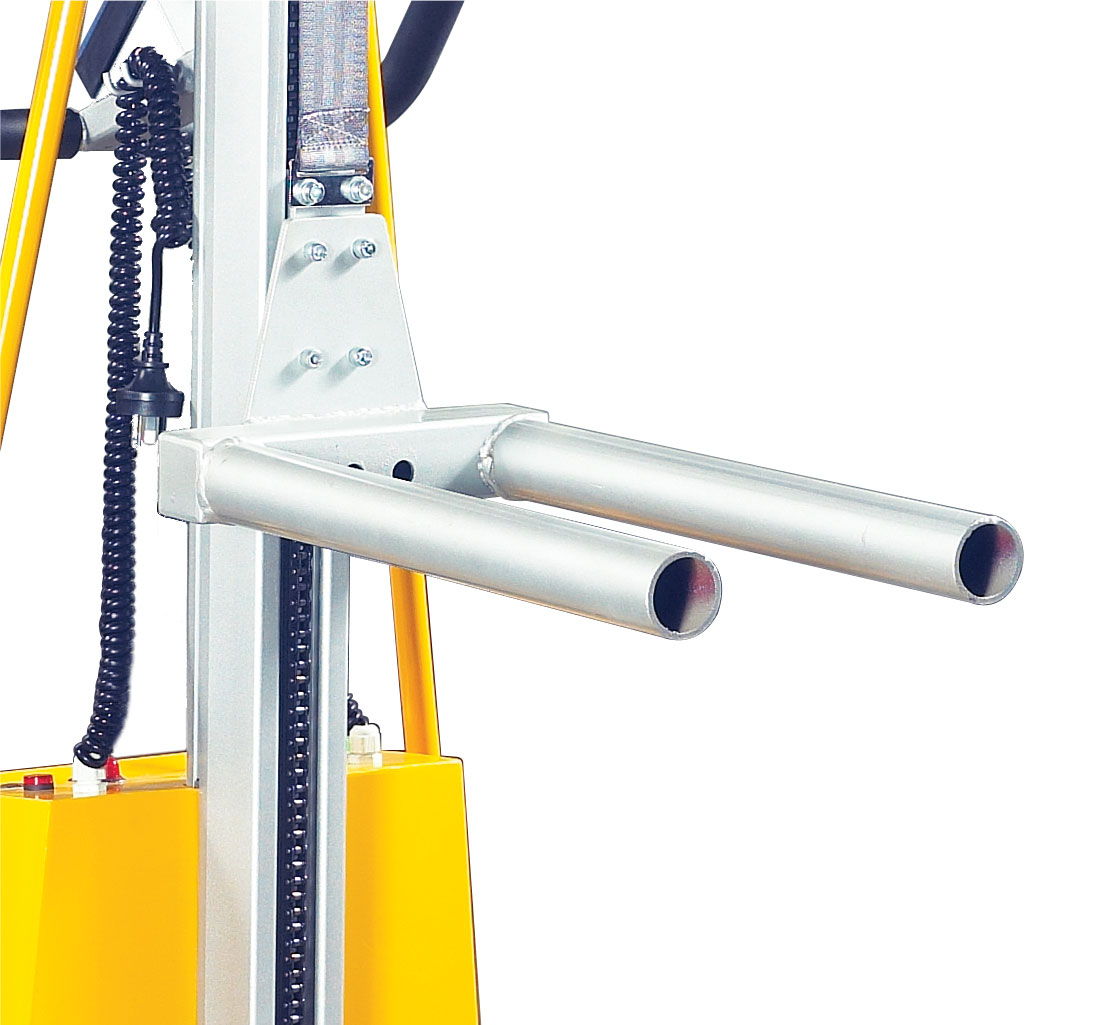 La elevación eléctrica mediante motor DC24V y batería de 12 Ah garantiza un funcionamiento fluido y continuo, con un sistema de descenso controlado electrónicamente que proporciona un movimiento uniforme y seguro. Los controles integrados permiten al operario realizar la elevación o el descenso con total comodidad, mientras que el mecanismo de seguridad de tipo “operario presente” detiene automáticamente la acción si se suelta el control, evitando movimientos no deseados. Este posicionador incluye además cargador incorporado, por lo que llega listo para usar desde el primer momento.