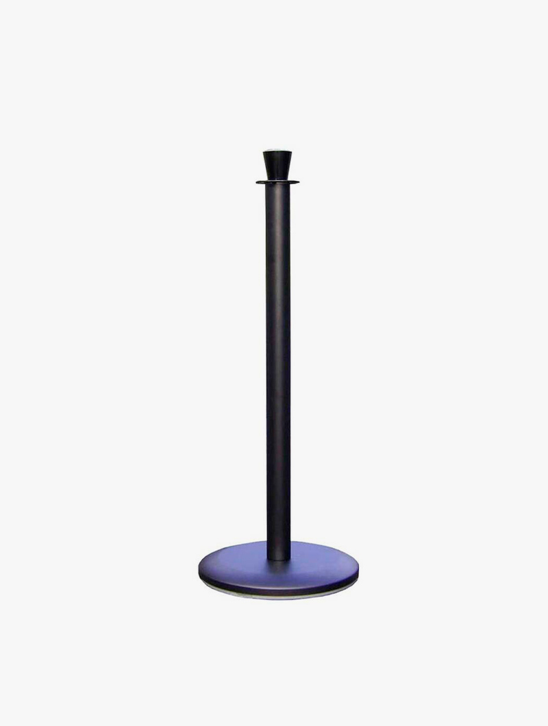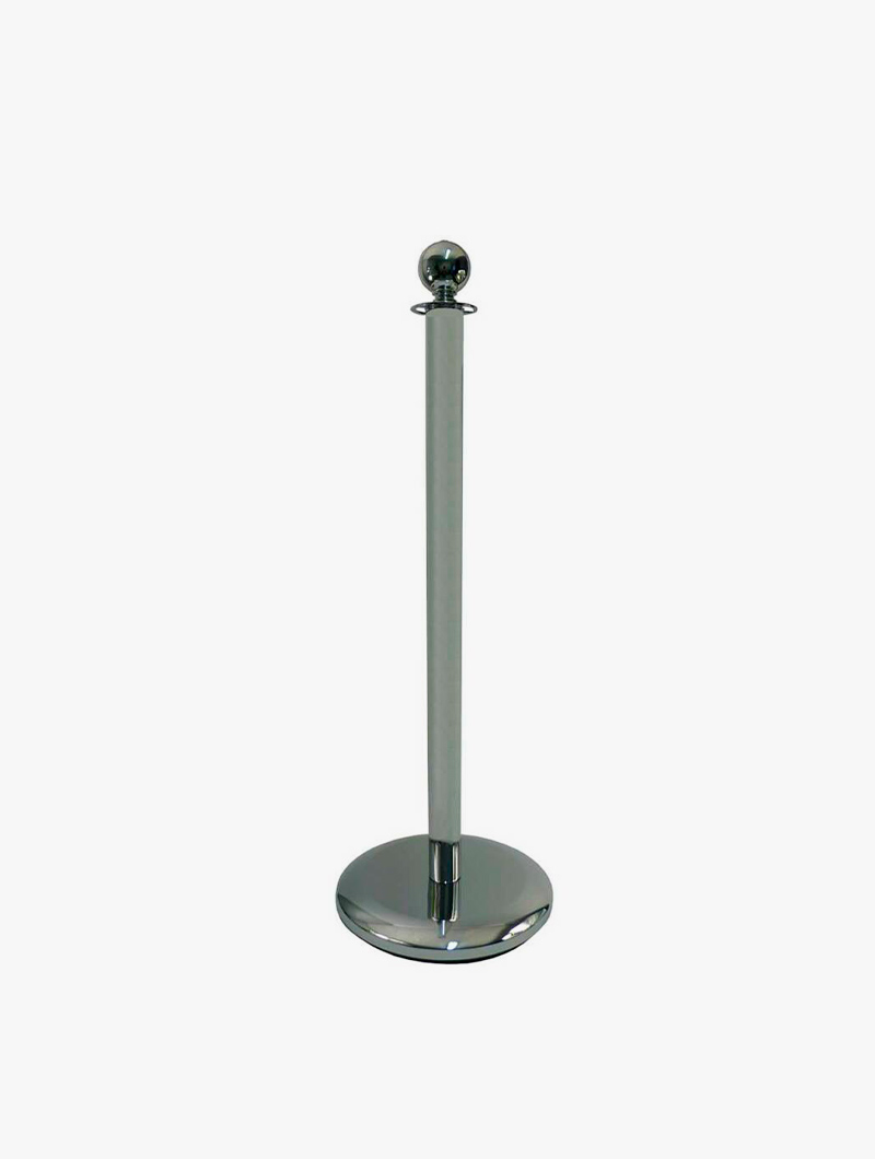 Poste elegante efecto metálico para cuerdas dcon base de carga redondeada, disponible en 3 acabados: negro, cromado y latón.