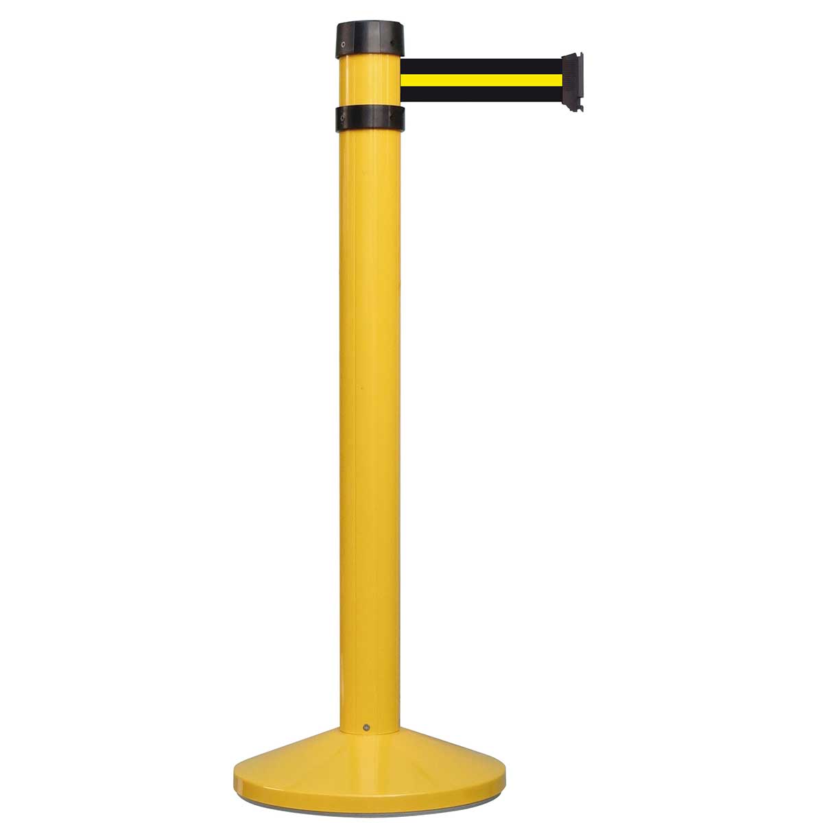 Cinturón de seguridad extensible de 2,00m o 4,00m (consultar para más medidas), con sistema de freno que evita accidentes durante la recogida de la cinta. La cabeza del poste puede recibir múltiples cintas para configurar zonas de cola o espacios restringidos en función de sus necesidades. Las cabezas son compatibles con el sistema de cinta de pared.