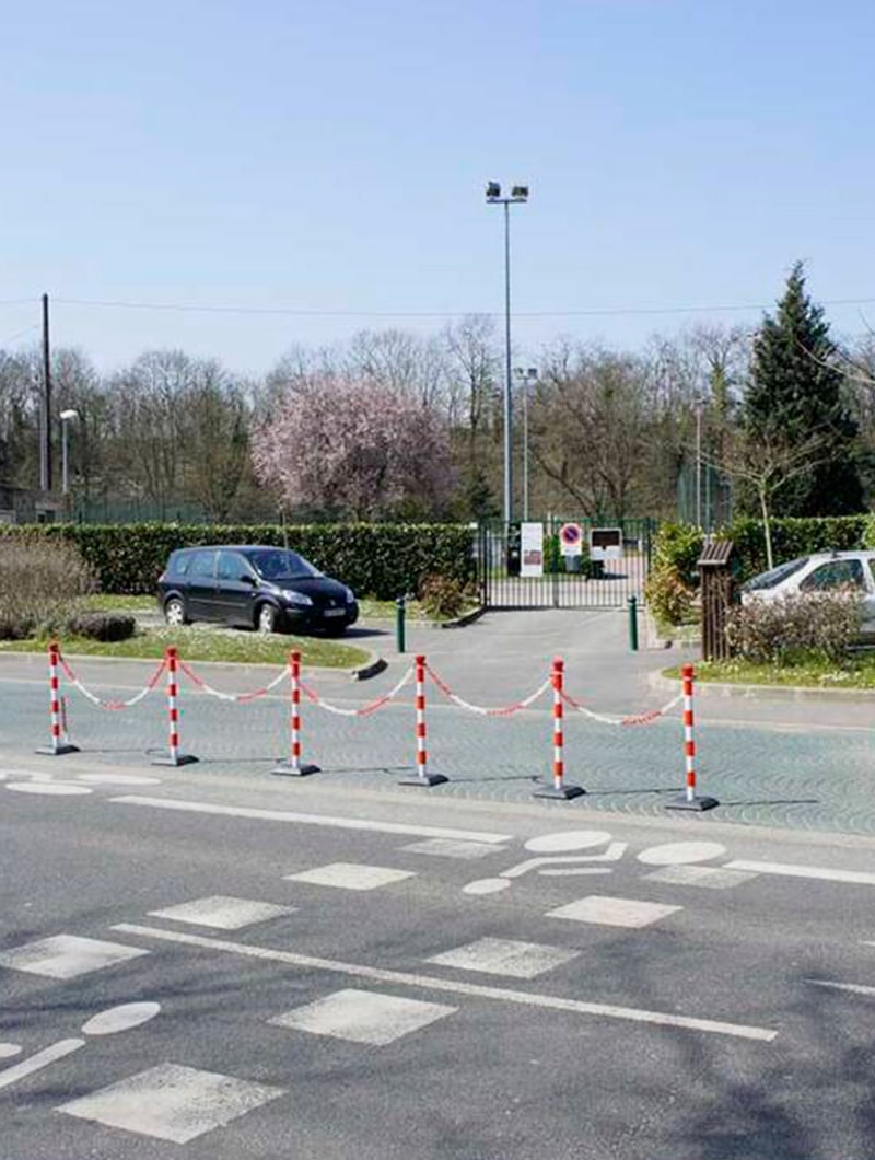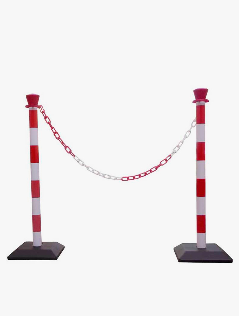 Postes de señalización con bandas reflectantes rojas y blancas o negras y amarillas, uno de los extremos dispone de gancho de fijación.